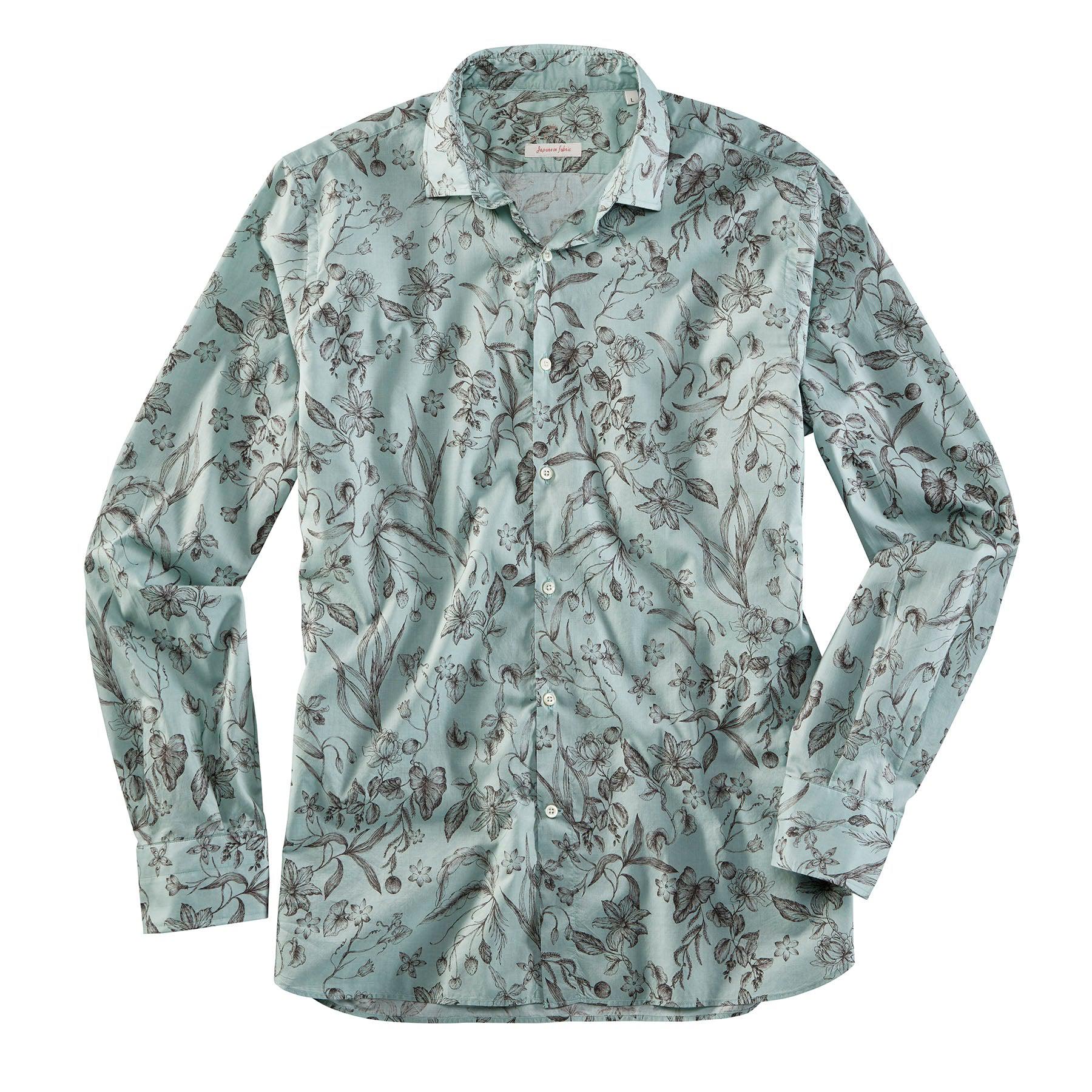 Langarmhemd aus extrem leichter Baumwolle von A.B.C.L. Dieses besondere Material wird auf speziellen Webstühlen in Japan gefertigt, nach jahrhundertelanger Tradition. Dadurch ist es auch sehr luftig und auf der Haut kaum spürbar. Das zarte florale Muster auf dem helltürkisen Untergrund unterstreicht das Sommerfeeling und den Wohlfühlfaktor.