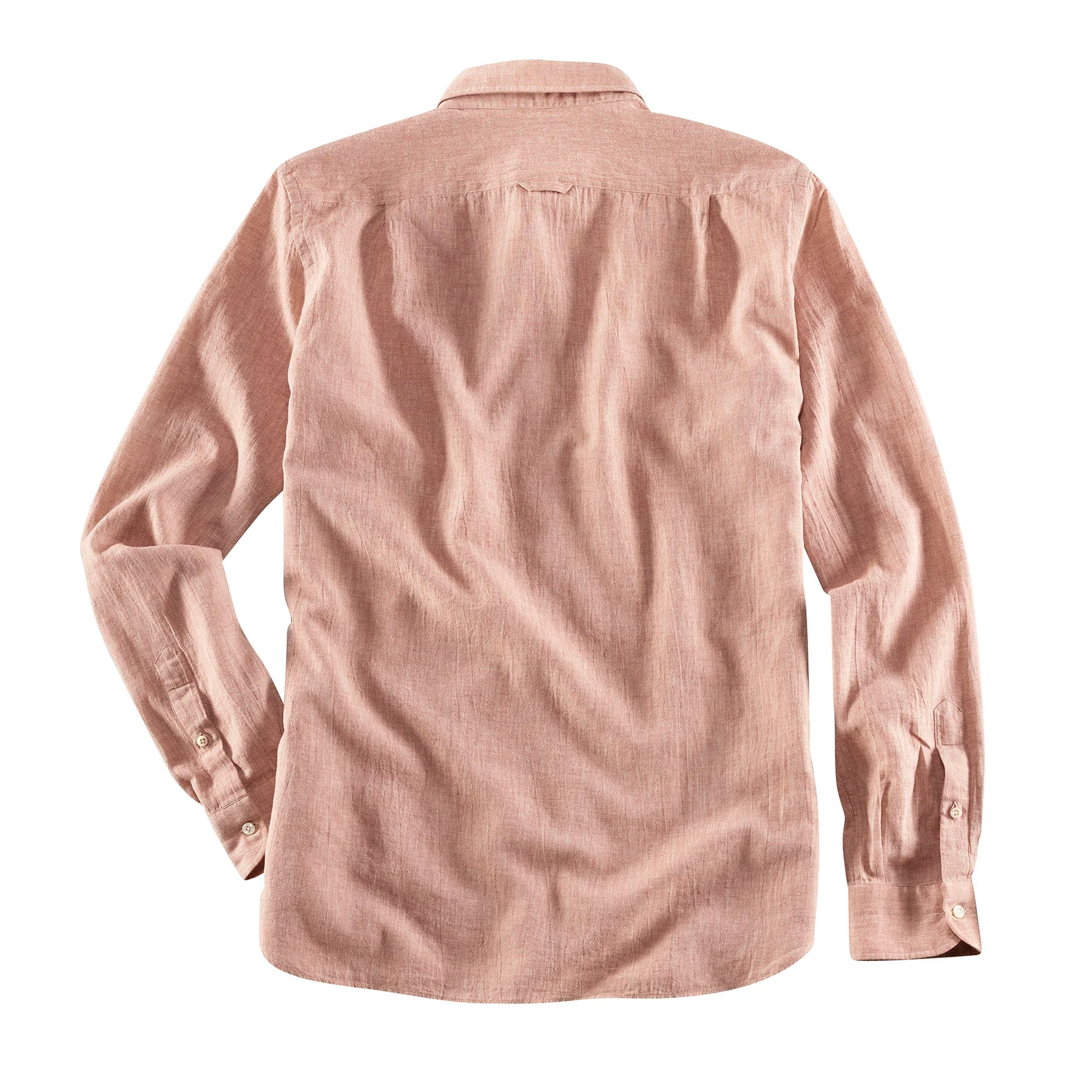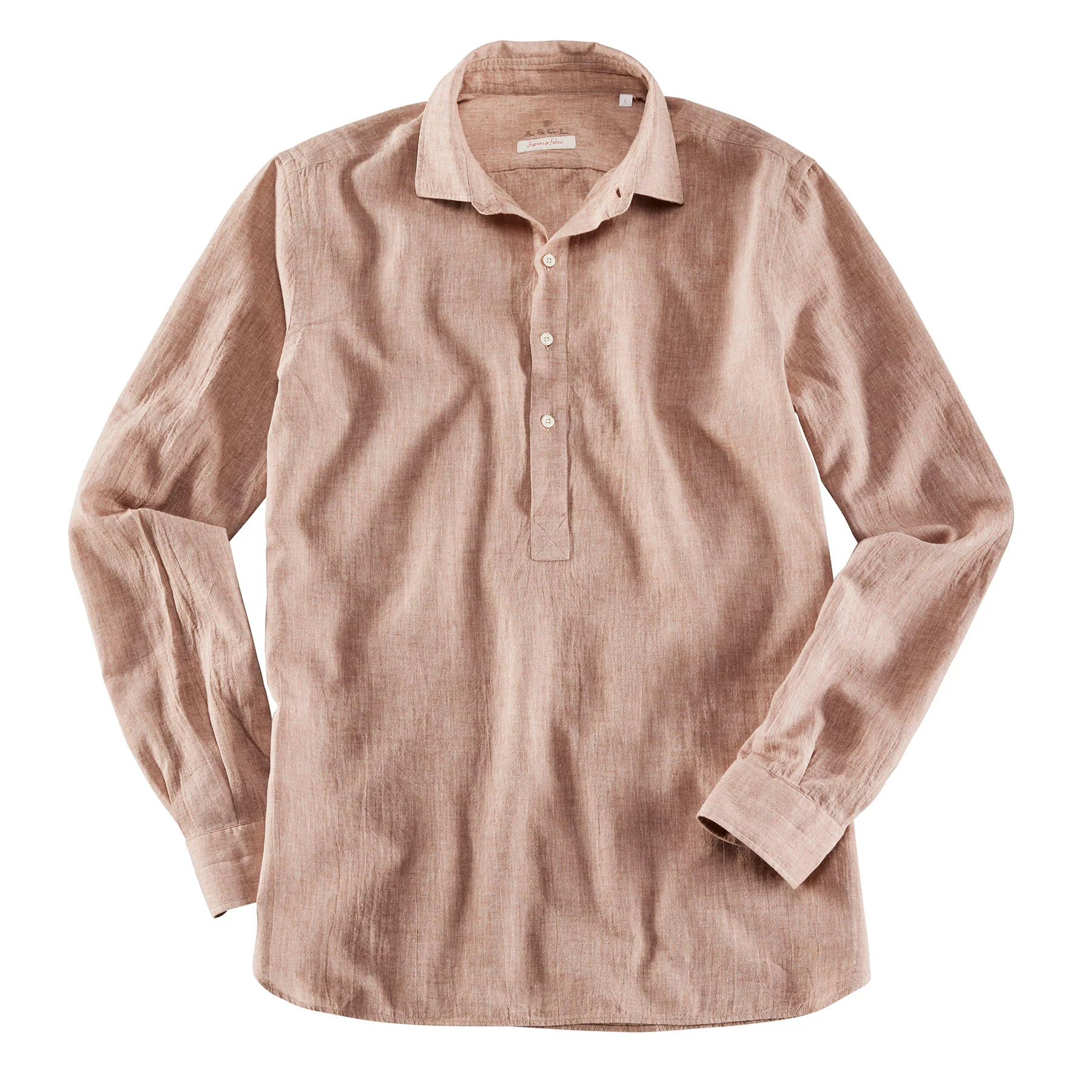 Herrenhemd in schönem Hellbraun von A.B.C.L. Die Baumwolle/Leinen Mischung vereint die besten Eigenschaften der beiden Materialien, es ist leicht kühlend, nicht allzu knitteranfällig und angenehm leicht. Ein witziges Detail ist die Knopfleiste, die nur bis zur Mitte des Hemdes reicht. Der relativ gerade Schnitt rundet nicht nur das lässige Gesamtbild wunderbar ab sondern sorgt auch für ein angenehmes Tragegefühl.