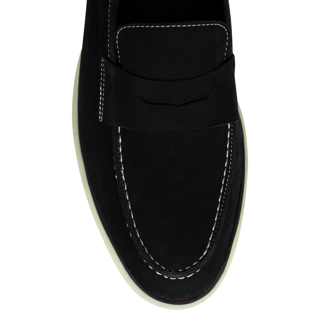 Alan, le mocassin vedette de la collection d’été. Fabriqué en Nubuck de qualité supérieure et doté d’une semelle blanche en gommes ultra-confortable, il incarne le mariage parfait entre le style sportif et chic. Idéal pour les tenues décontractées et sophistiquées, le mocassin « Alan » vous offre un confort exceptionnel sans compromettre votre élégance.