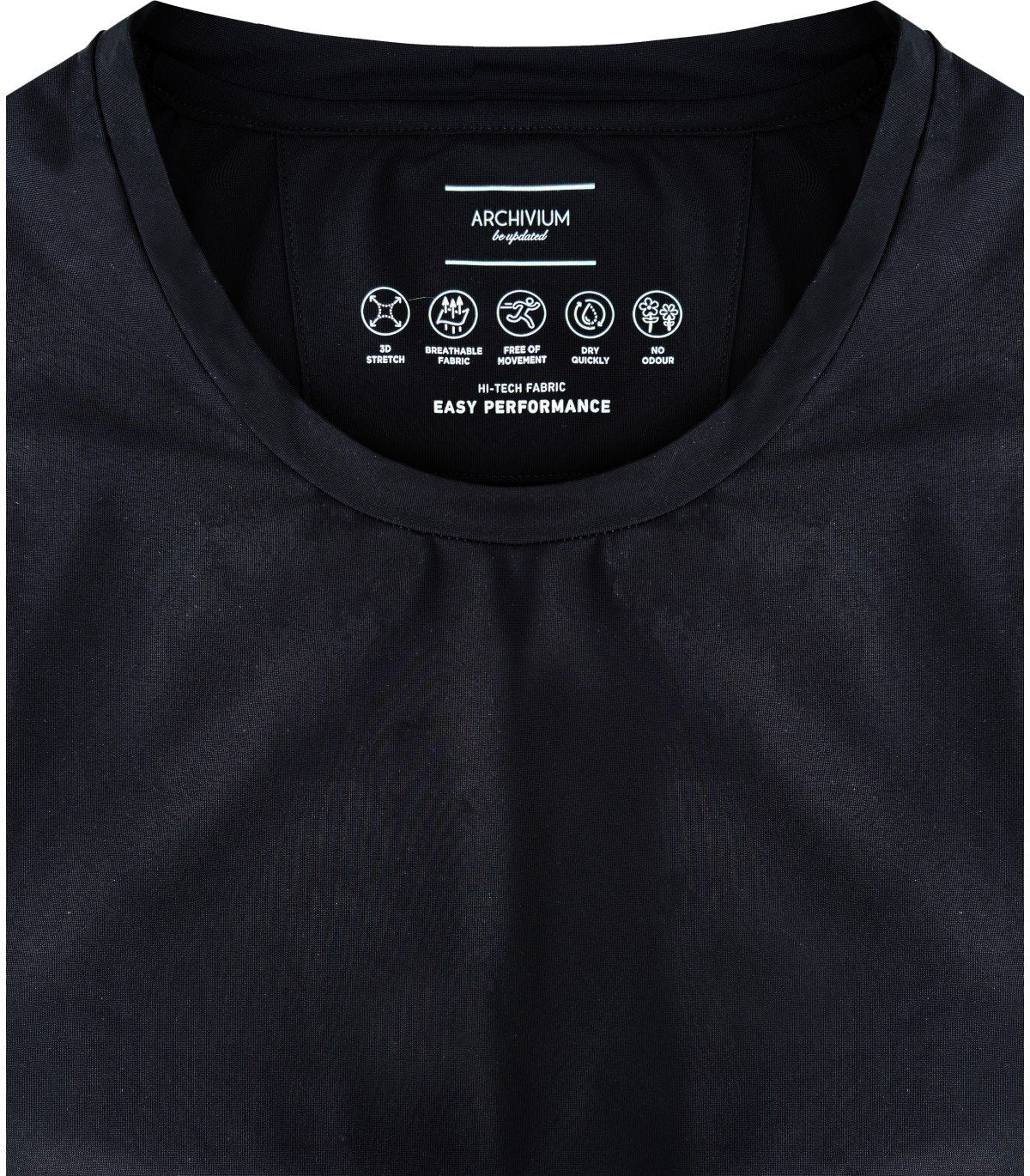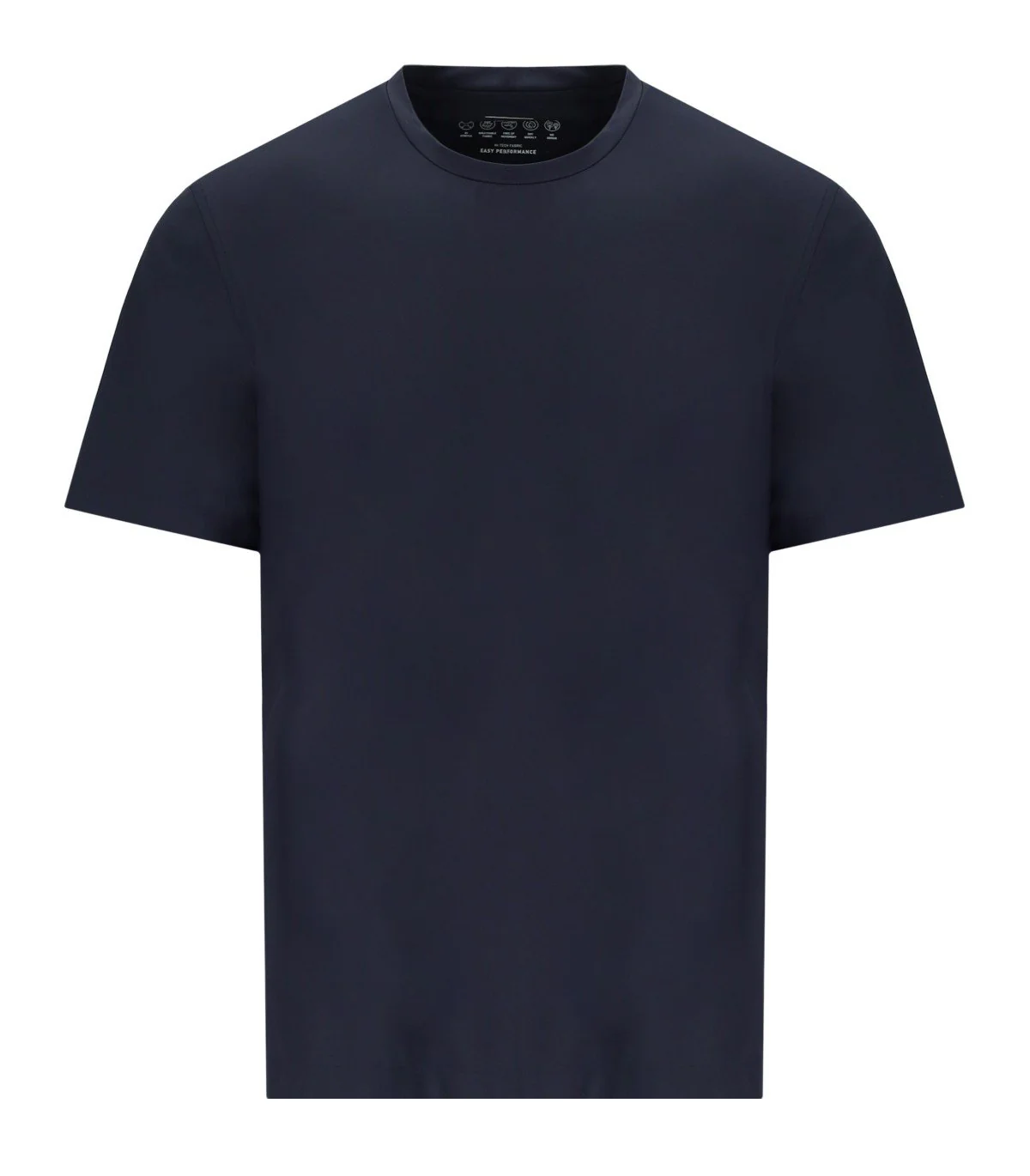 Archivium T-shirt in blue stretch technical fabric with a classic crew neck. No ironing required and offers a slim fit.