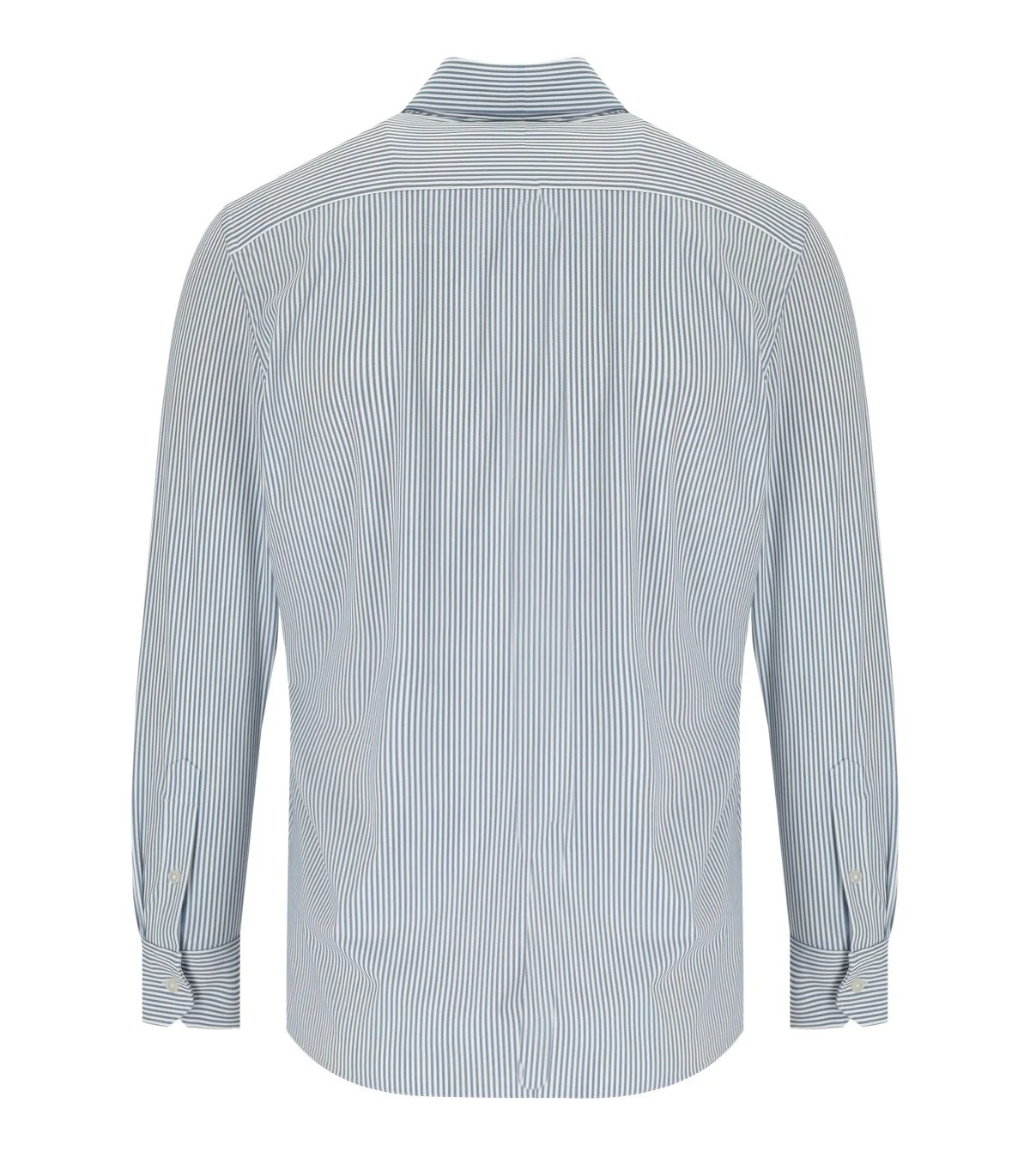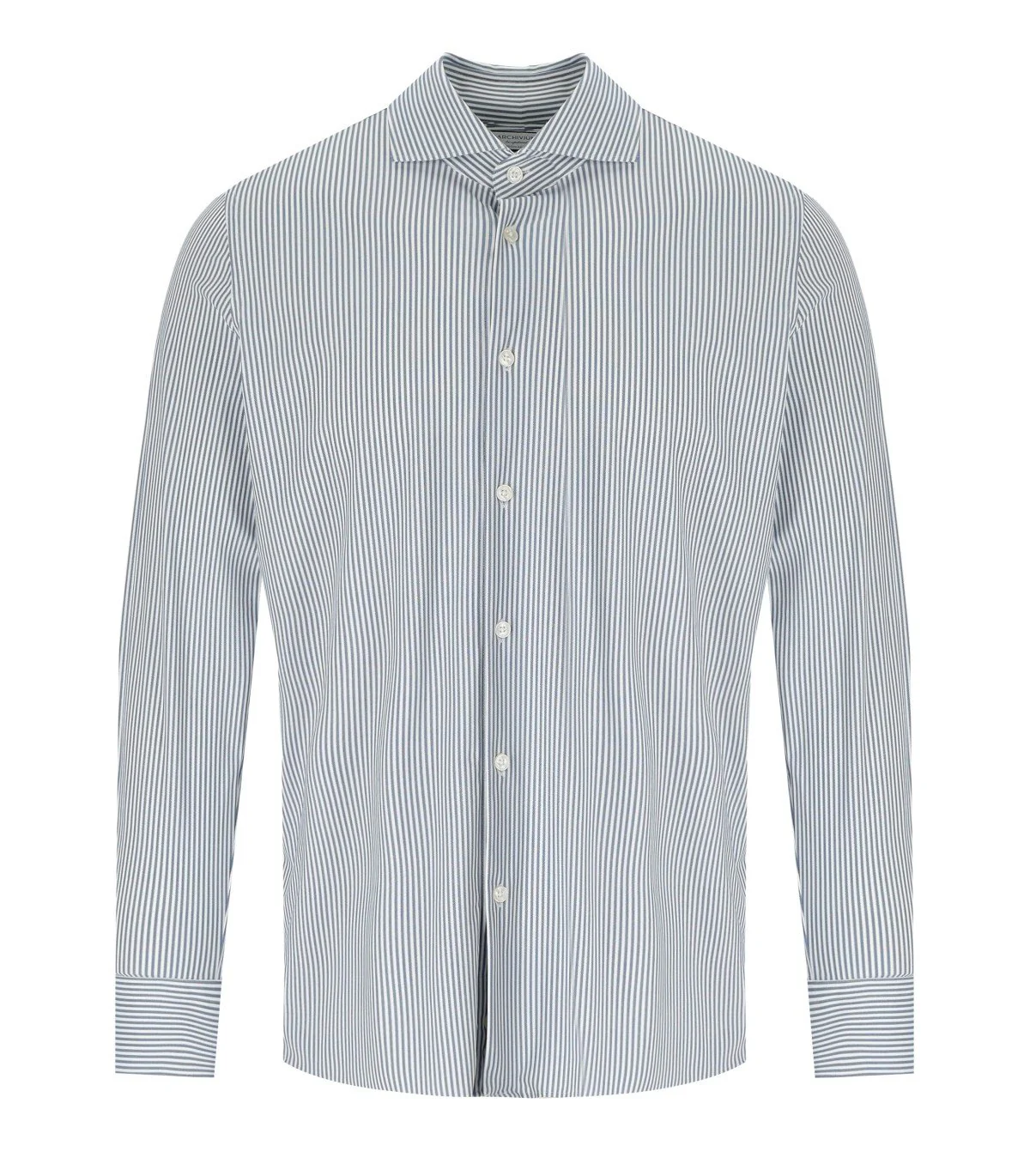 Archivium shirt made of Oxford-effect, no-iron, stretch technical fabric in shades of white and blue. Featuring a vertical striped pattern, button closure on the front and long sleeves with buttoned cuffs. Regular fit.