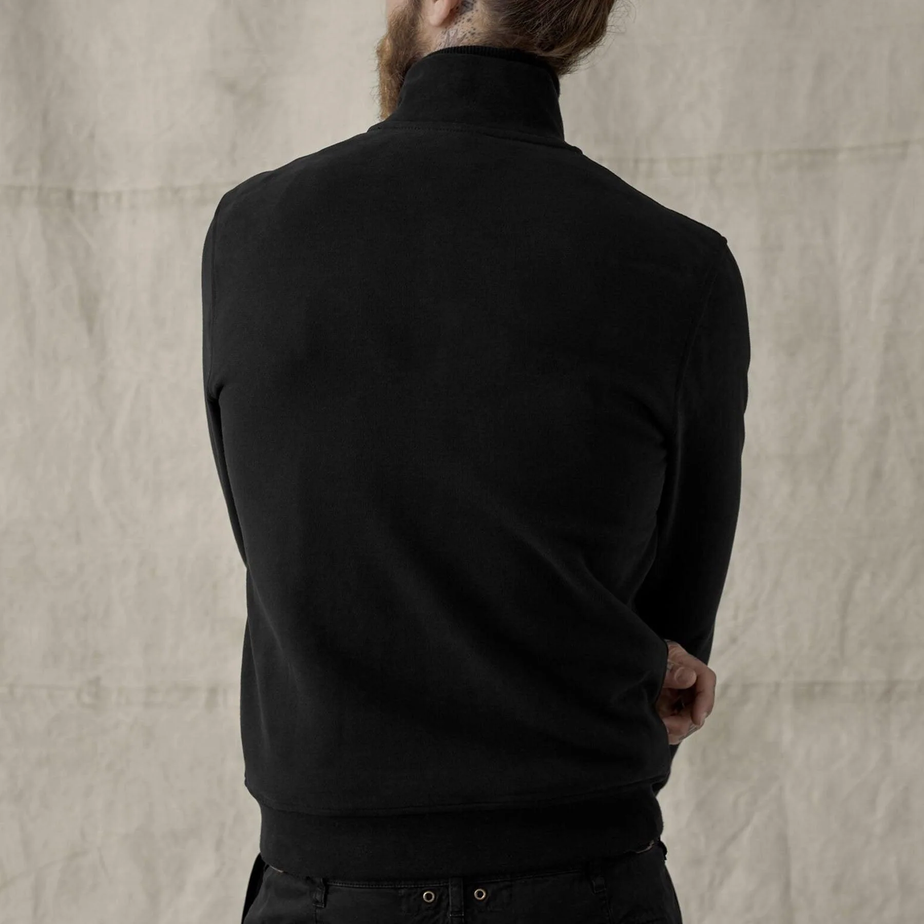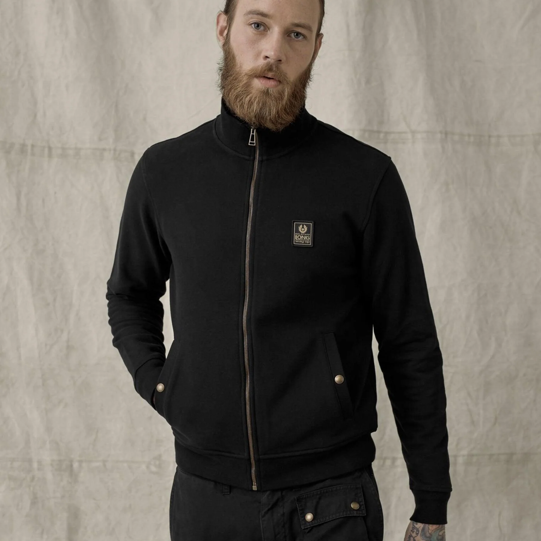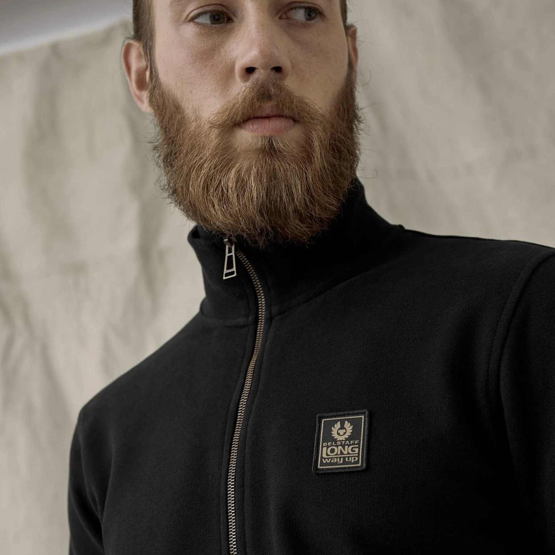 Zippjacke aus der limitierten Kollektion von Long Way Up von Belstaff Pure Motorcycle. Der extrem weiche Sweatstoff sorgt für ein sehr angenehmes Tragegefühl und Wärme, ohne zu dick zu sein. Die Strickbündchen am Kragen, den Ärmeln und dem Bund unterstützen diesen Komfort. Zwei Schubtaschen bieten ein wenig Stauraum, der Inhalt der Taschen wird durch einen Druckknopf gesichert. Ein kleiner Long Way Up Patch an der linken Brust rundet die schlichte Optik lässig ab.