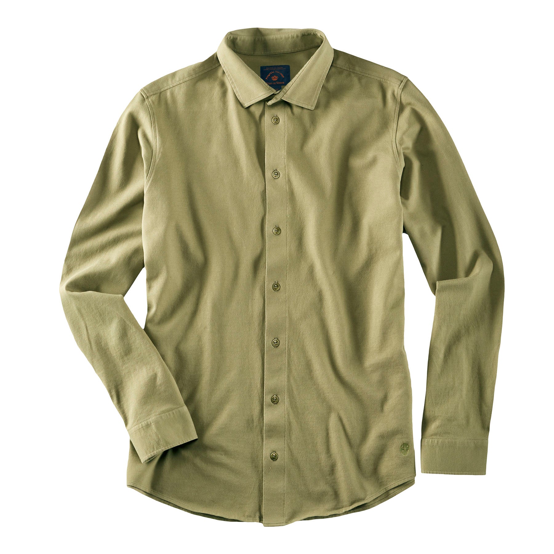 Olivgrünes Herrenhemd von Blue de Gênes. Durch den verwendeten Baumwoll-Jersey entsteht eine etwas belebtere und sportliche Optik. Der klassische Schnitt macht das Hemd aber umso mehr auch geschäftstauglich. Dank der Struktur ist das Material auch relativ knitterarm und sehr weich. Die echten Steinnuß-Knöpfe sind mit Logo Prägung versehen und unterstreichen den lässigen, edlen Look.