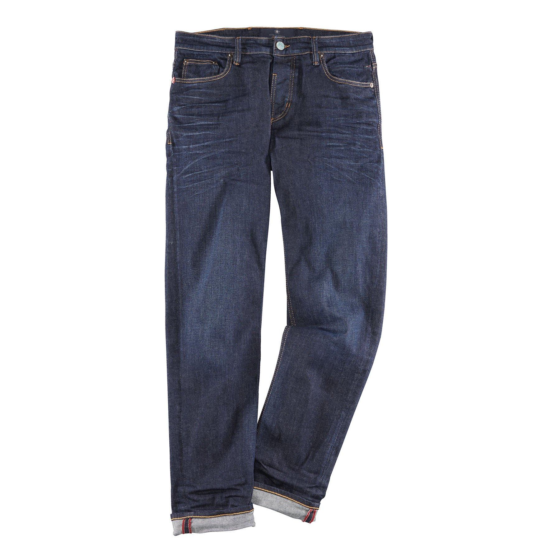 Klassische Five-Pocket-Jeans in regular Fit von Blue de Gênes. Dieses Modell ist die perfekte Standardhose für absolut jede Gelegenheit. Clean in der Waschung und ausgestattet mit den typischen Kontrastnähten sind lediglich die oxidierten Knöpfe eine sehr spezielle Besonderheit. Komplett Made in Italy, Länge immer 34 Inch.