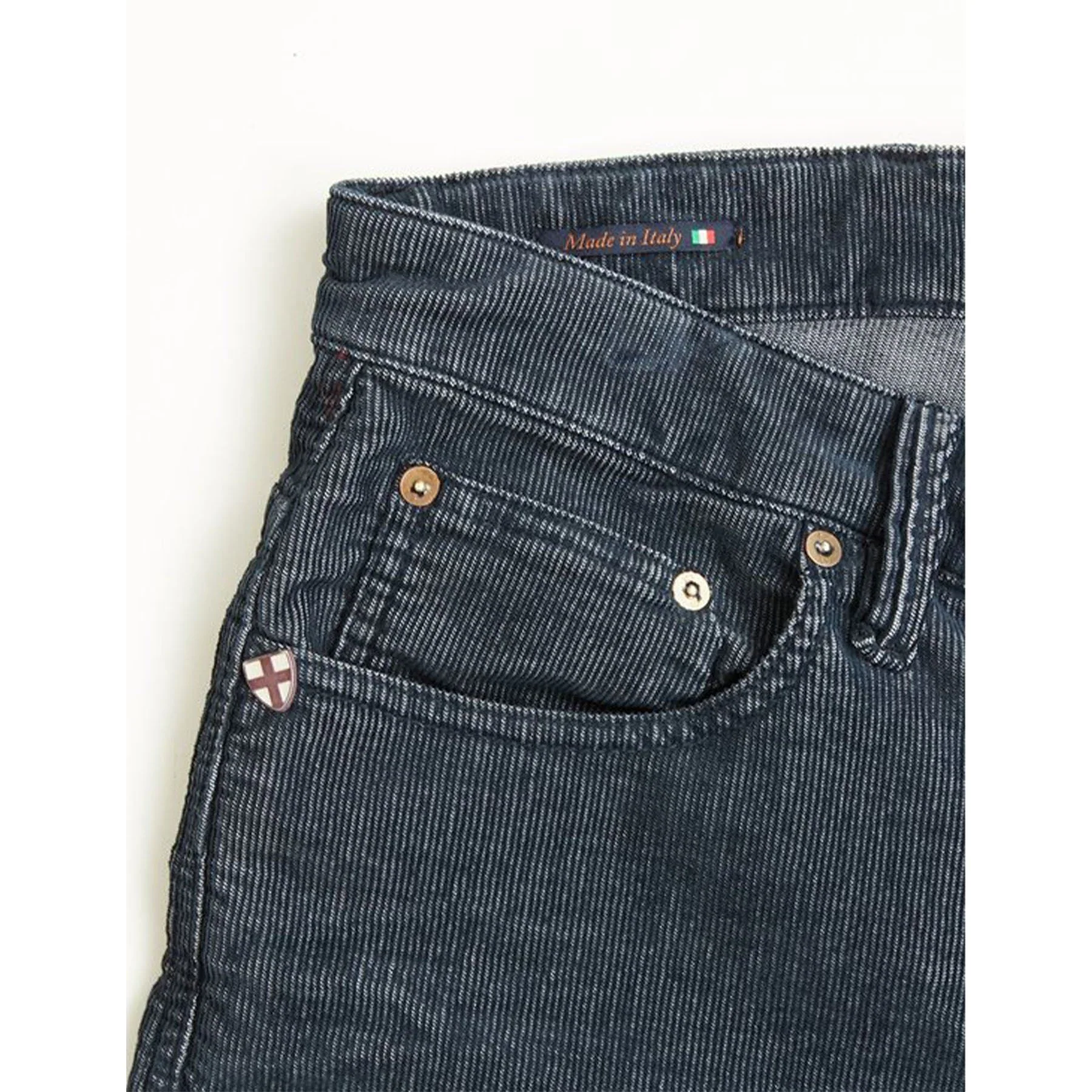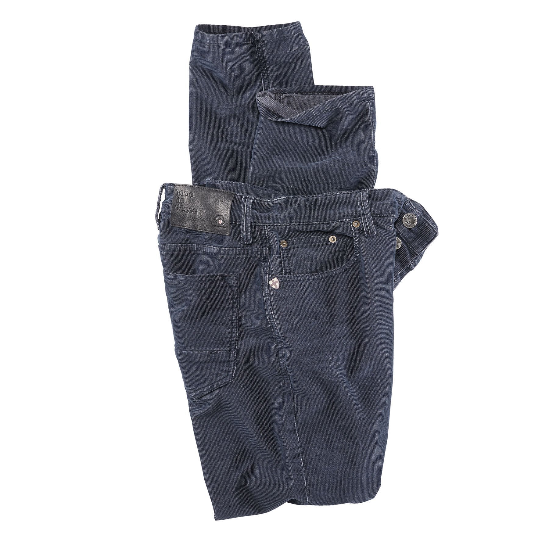 Five-Pocket-Hose aus feinem Cord von Blue de Gênes. Durch den Schnitt und den regular Fit sitzt die Hose perfekt und hat einen sehr lässigen Look. Sehr clean gehalten, alles ton-in-ton, lediglich die geprägten bzw. gehämmerten Knöpfe betonen die Liebe zu Detail dieses außergewöhnlichen Labels. Länge immer 34 Inch.