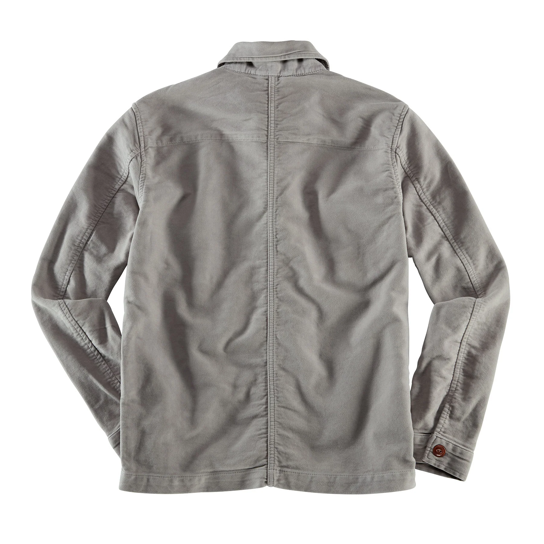 Graues Overshirt aus Baumwolle von Blue de Gênes. Durch den verwendeten Moleskin ist das Shirt robust und wärmend, dennoch nicht zu dick oder schwer. Klassisch designt wie ein Hemd mit kleinem Kragen und zwei Brusttaschen mit Patte bekommt das Teil durch den relaxten Schnitt eine ganz spezielle Lässigkeit. Die braunen Knöpfe mit Gravur aus echter Steinnuß betonen die Wertigkeit ohne die Coolness abzuwerten.