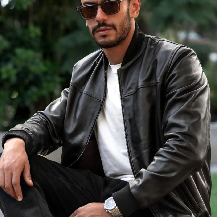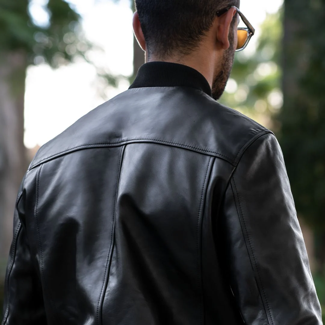 Bomber est une veste en cuir de veau conçue pour le style quotidien, alliant simplicité et matériaux de haute qualité. Avec son col en cotton élastique, ce blouson en cuir offre une allure discrète mais charismatique, parfaite pour les hommes souhaitant un look distinctif. Idéale pour un usage quotidien, cette veste en cuir se distingue par sa finition soignée et ses poches intérieures, dont une poche pour téléphone gravée du logo Bleather.