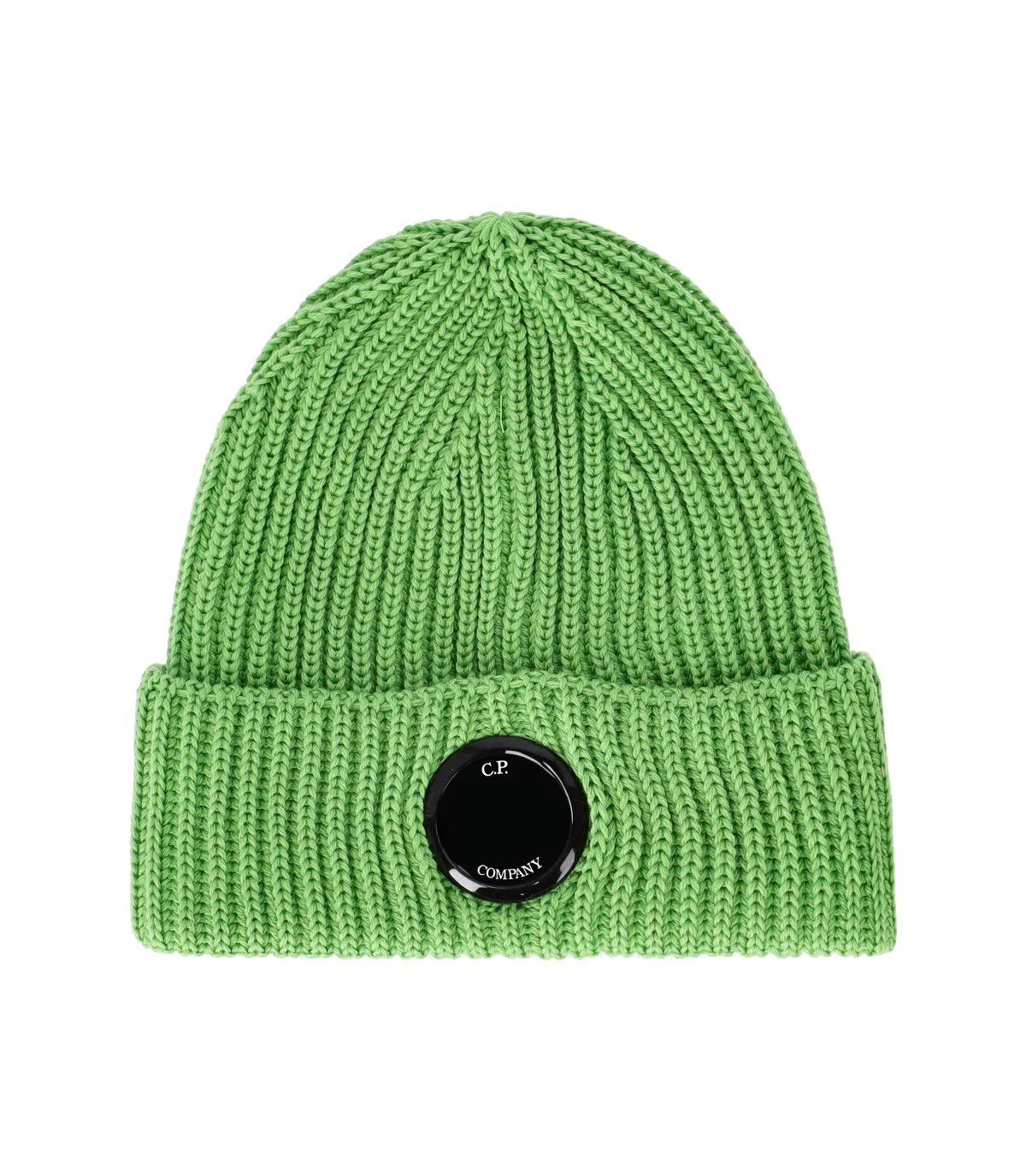 C.P. Company made of ribbed wool in shades of green with iconic C.P. Lens on the front. Composition: 100% wool.