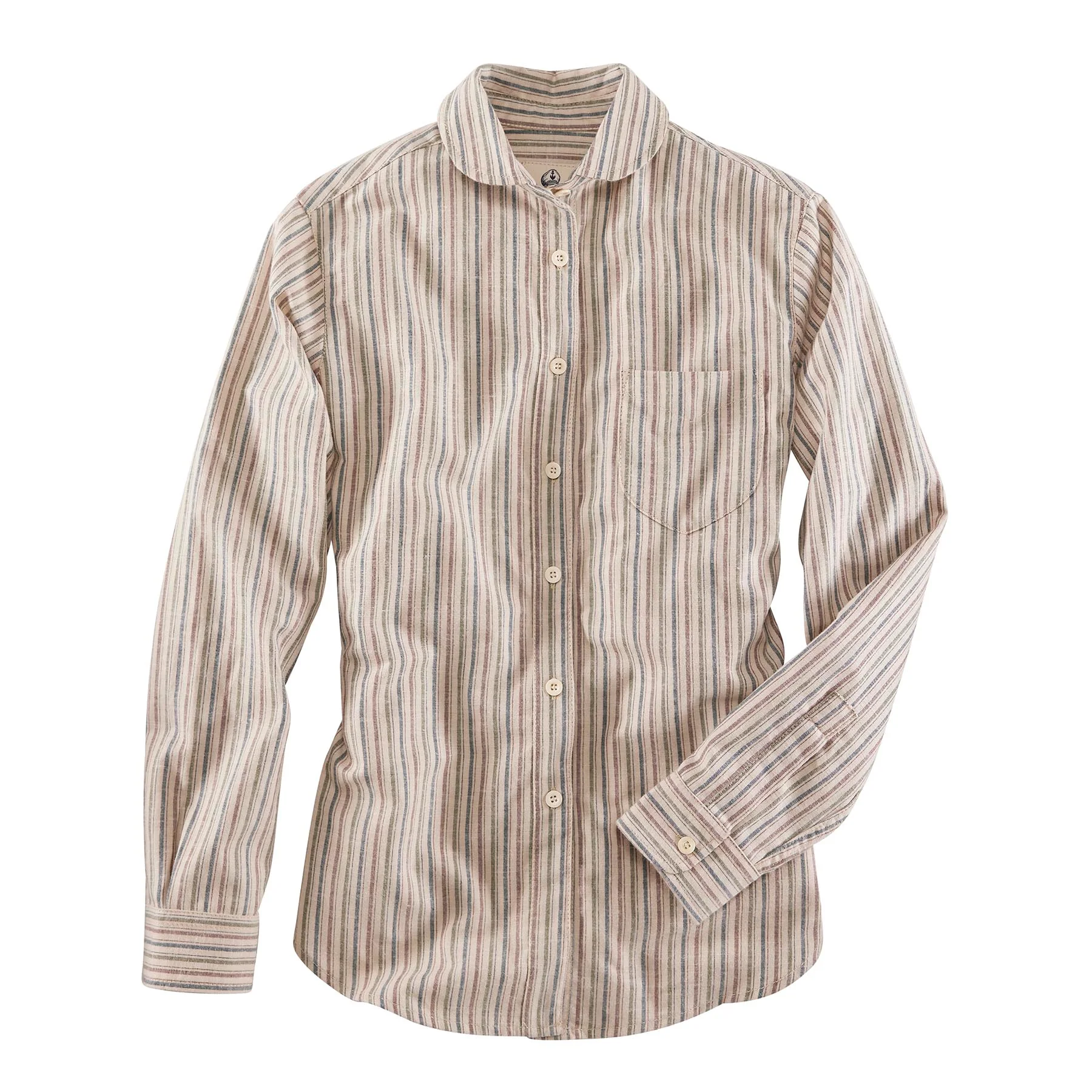 Gestreiftes Damenhemd von Captain Santors. Die Farbwahl aus dunklen Tönen sowie die besondere Kragenlösung verleihen eine elegante Optik, ohne das Hemd spießig erscheinen zu lassen. Durch Taillierungsnähte am Rückenteil entsteht eine sehr lässige und leicht figurbetonte Passform. Auch hier ist die übliche Rezeptkarte aus Großmutters Küche beigefügt und auch hier ist alles Made in Italy.