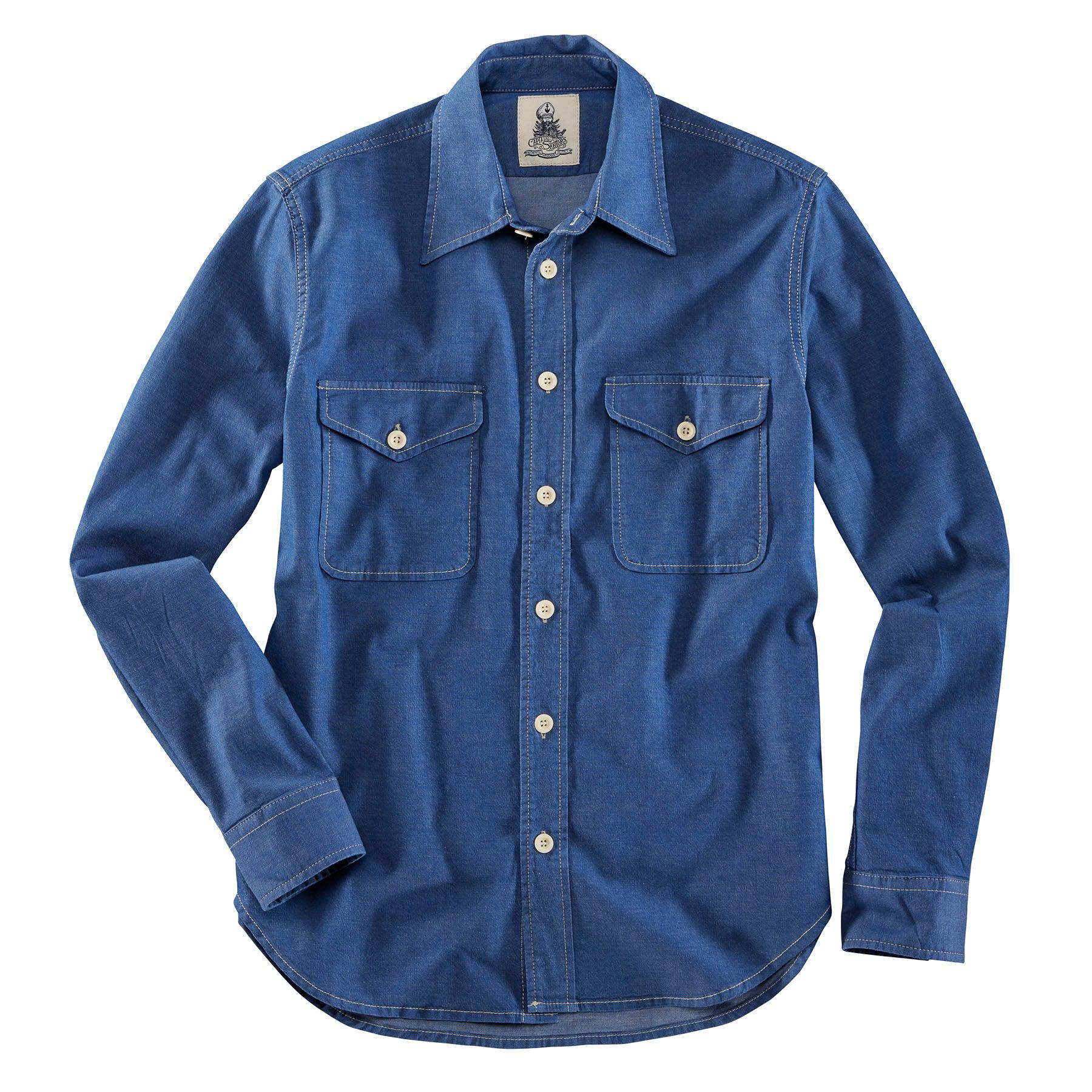Denimblaues Herrenhemd von Captain Santors. Durch den ein wenig längeren Kragen und die Kontrastnähte bekommt das Hemd eine ganz andere Optik und wird vom Klassiker zum absolut coolen Teil. Durch spezielle Webtechniken hat das Material einen ganz leichten Schimmer, was die Oberfläche ein wenig belebter macht. Komplett Made in Italy.