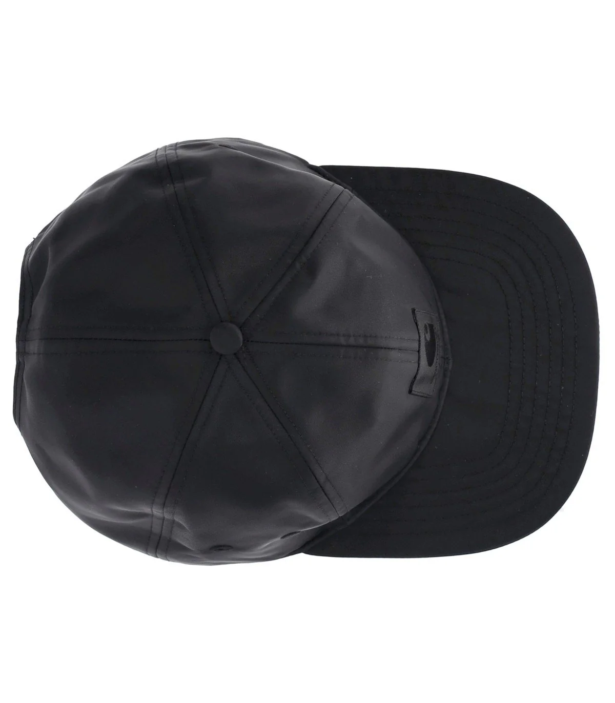 Otley Cap by Carhartt Wip made of a cotton blend nylon twill in black. Tone-on-tone embroidered label at the front and adjustable strap with silver metal buckle at the back. Rigid flat visor. Equipped with a lined front panel. Head circumference: 49 – 61 cm.
