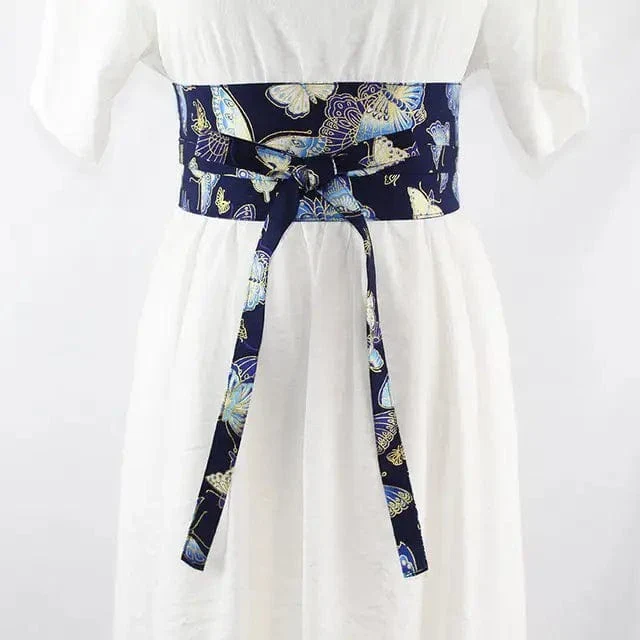 Ceinture Obi à nouer Bleu Marine Papillons d’Or
