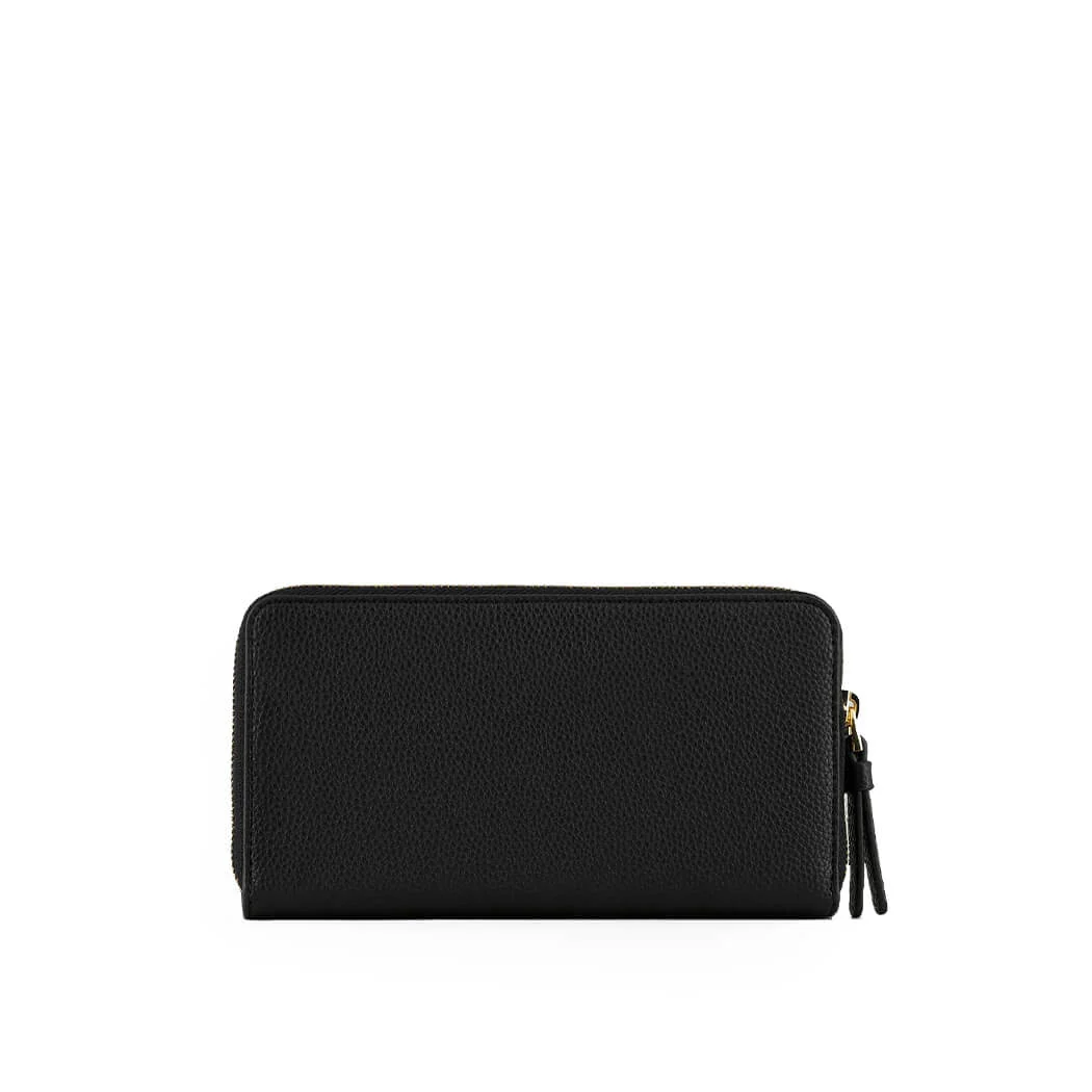 Emporio Armani MYEA wallet of black pebbled faux leather with embossed logo on the front. Internal compartments for cards with coin pocket. Zip closure, size 20,5x11x2,7 cm.