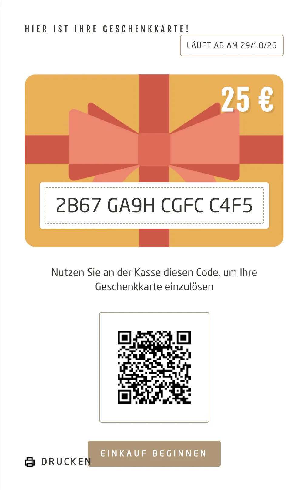 Ein Gutschein von Bad&Bold macht auf alle Fälle immer Eindruck. Du bekommst den Rabattcode per E-Mail gesendet und kannst diesen teilen oder auch in deinem Wallet speichern.