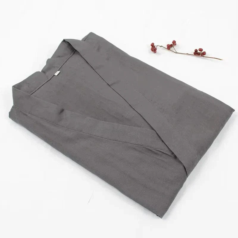 Jinbei traditionnel en lin gris – Élégance et Confort Unisexe