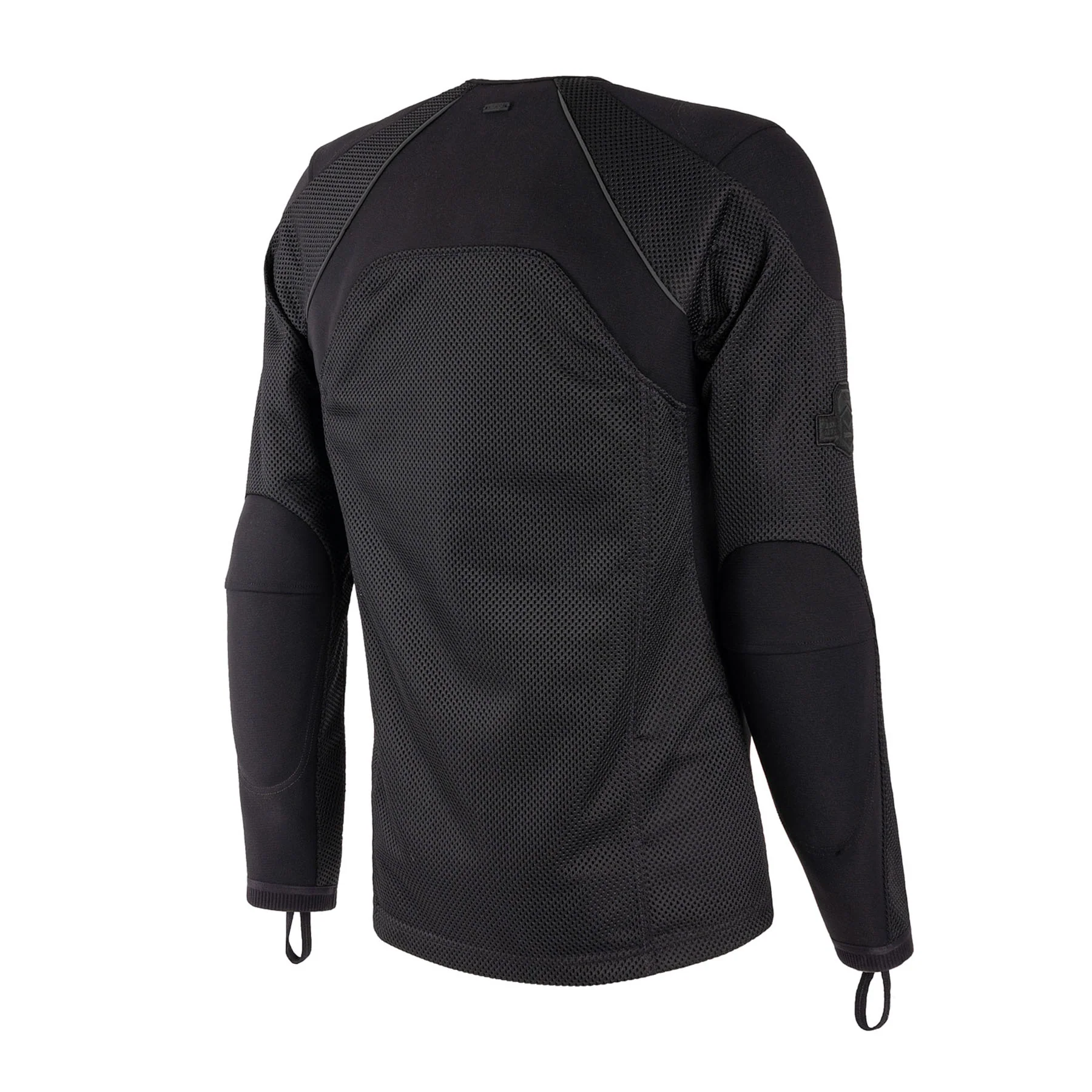 Ausgerüstet mit den bekannten Knox Protektoren an Ellbogen, Schultern und Rücken ist an der vorderen Kante ein Klettstreifen eingearbeitet, an dem sogar ein optionaler Brustprotektor angebracht werden kann. Dank des dünnen Materials kann dieses Hemd einzeln aber auch unter einer normalen Jacke o. Ä. getragen werden. Daumenschlaufen sowie Sicherheitsgürtelschlaufen verhindern im Ernstfall das Verrutschen.