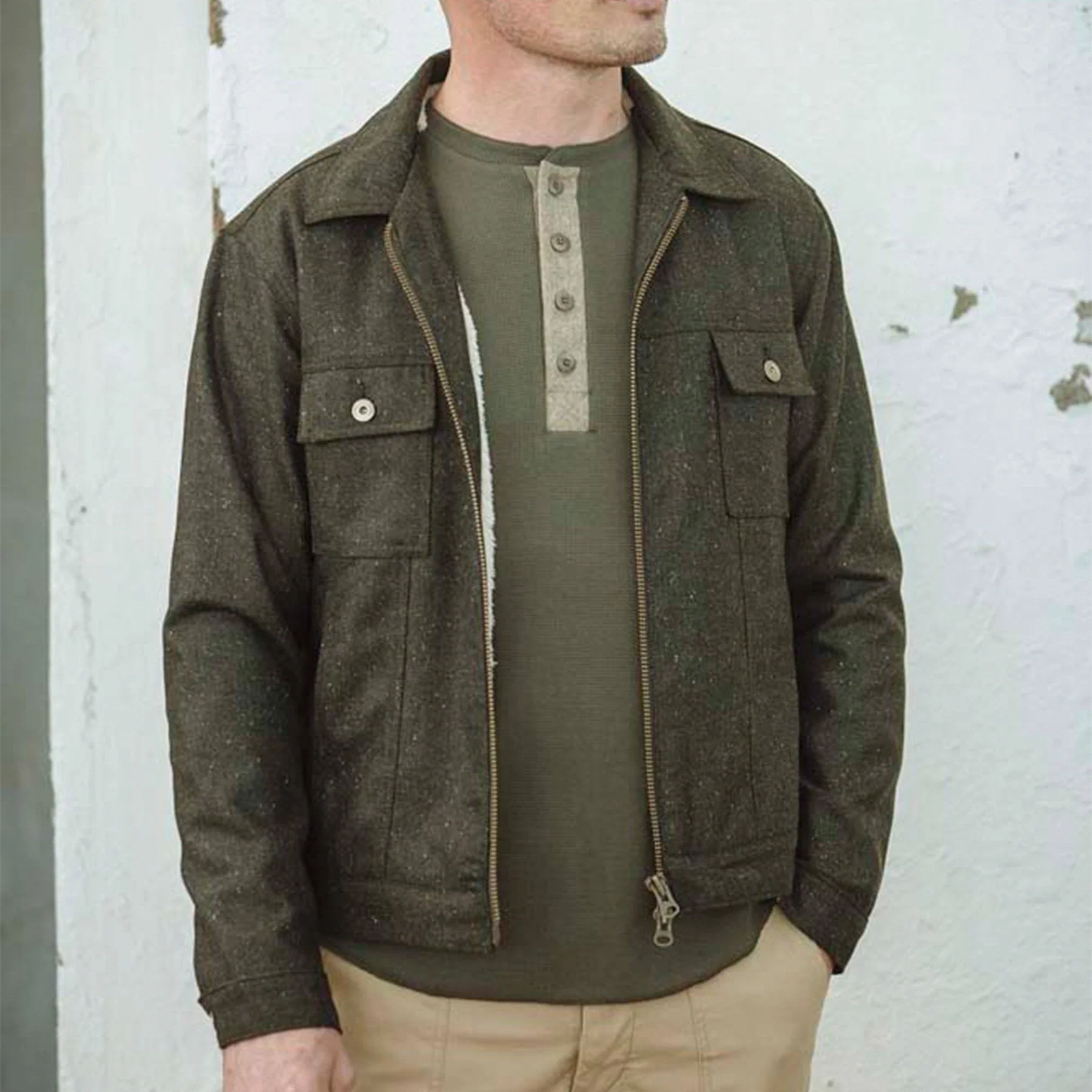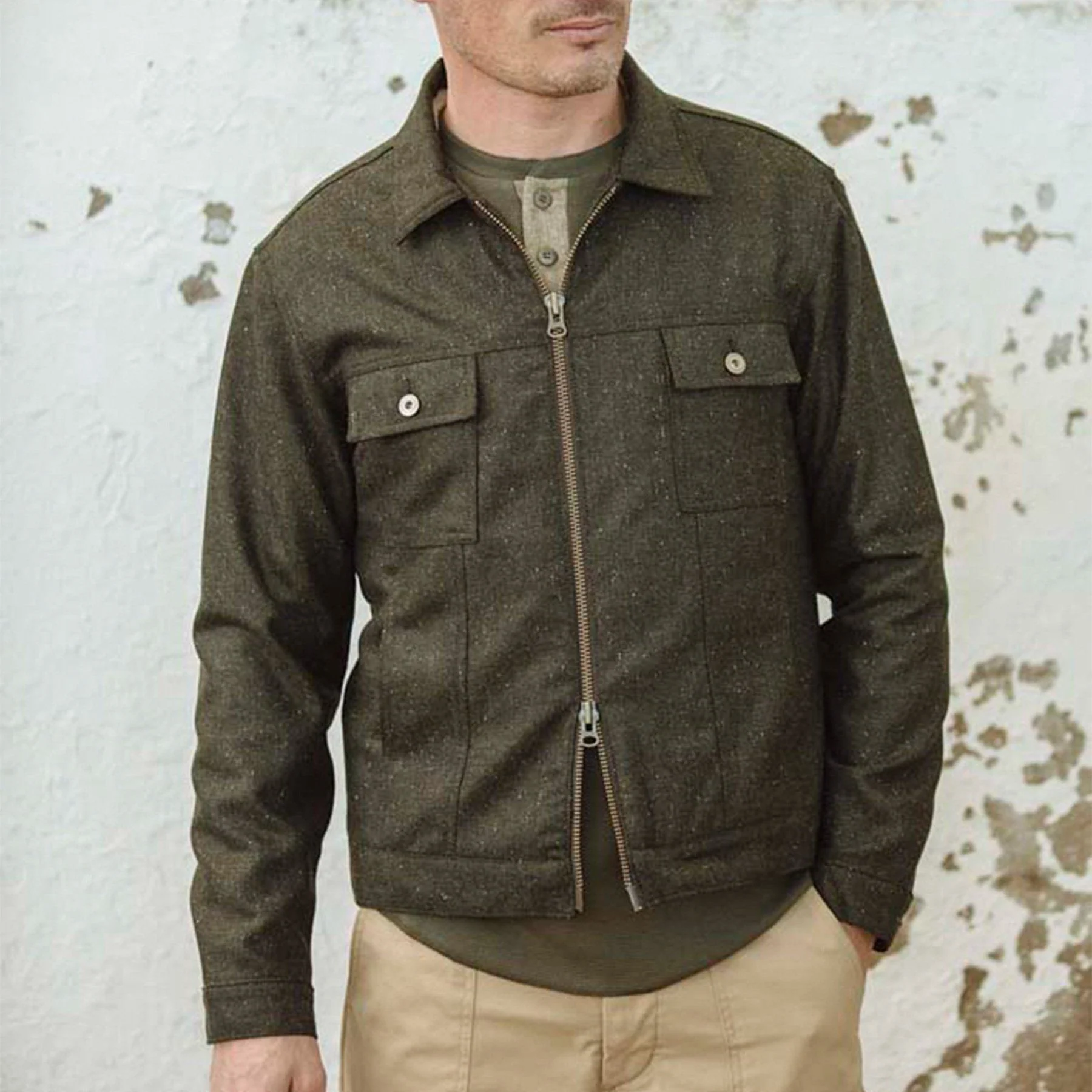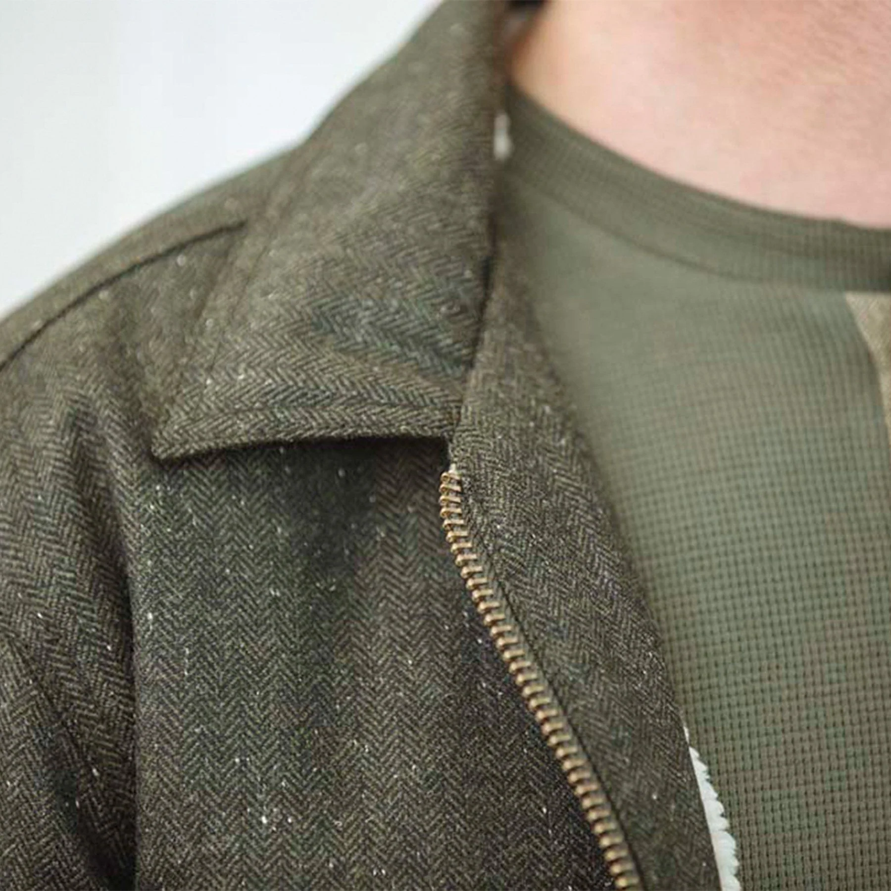 Herrenjacke im Workerstil vom französischen Label Kytone. Dieser klassische Stil wird durch die gerade Form und die speziellen Taschen am Vorderteil sehr schön unterstrichen. Das Hahnentritt-Muster dieser Wolle/Polyester Mischung unterstreicht zusätzlich diesen Style. Ein warmes Plüschfutter hält angenehm warm, eine Innentasche bietet weiteren Stauraum. Angenehm leicht, sensationelle Optik.