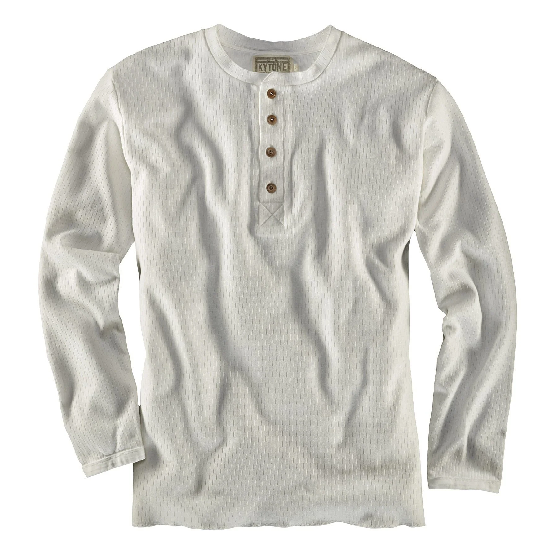Henley aus strukturierter Baumwolle von Kytone. Durch eben diese Struktur und den relativ geraden Schnitt trägt sich das Langarmshirt sehr angenehm leicht und weich. Die Knopfleiste lässt sich selbstverständlich öffnen, Bund und Ärmel enden gerade, ohne Bündchen, was den lässigen Look zusätzlich unterstreicht. Das Rückenteil ist außerdem für höchsten Tragekomfort ein wenig länger geschnitten.