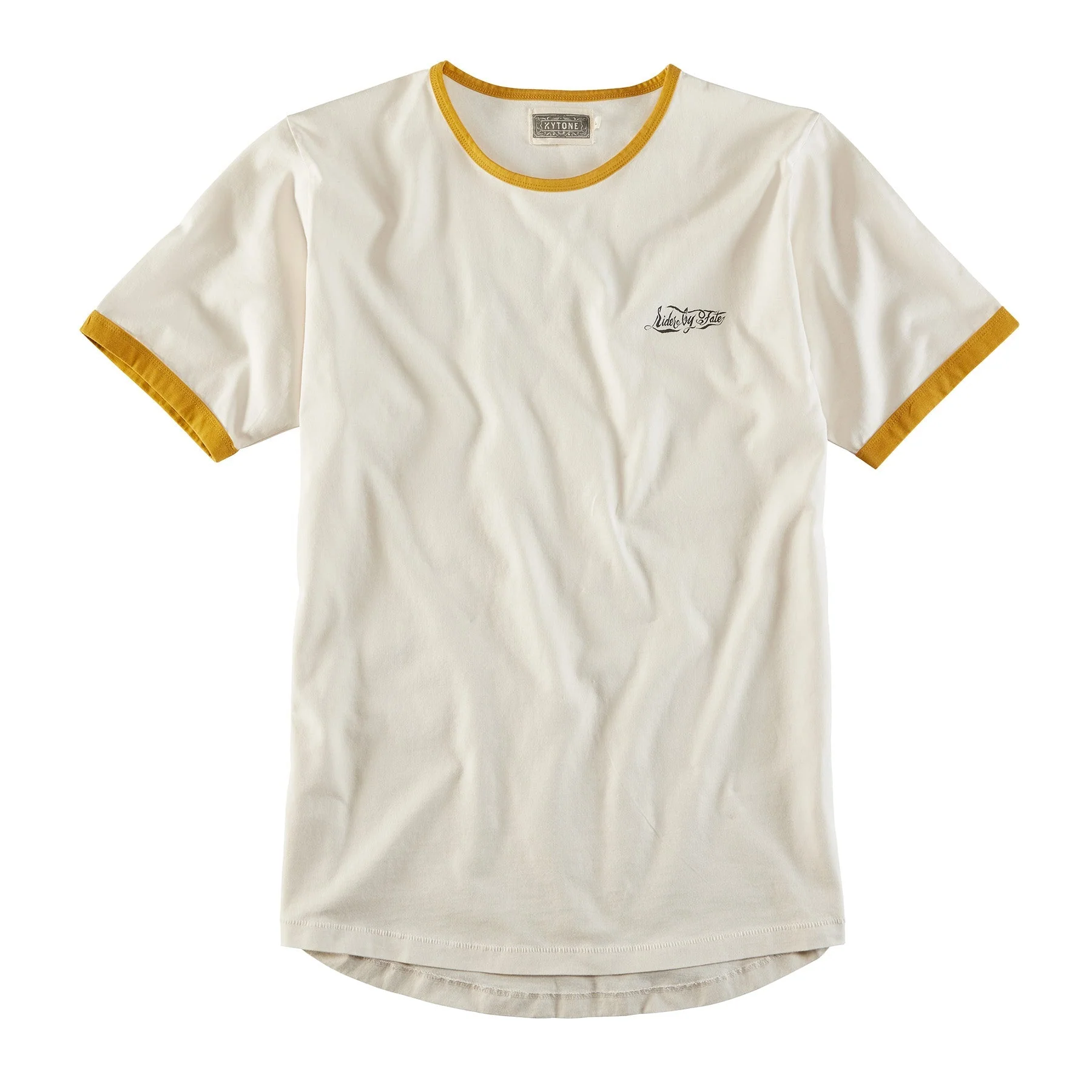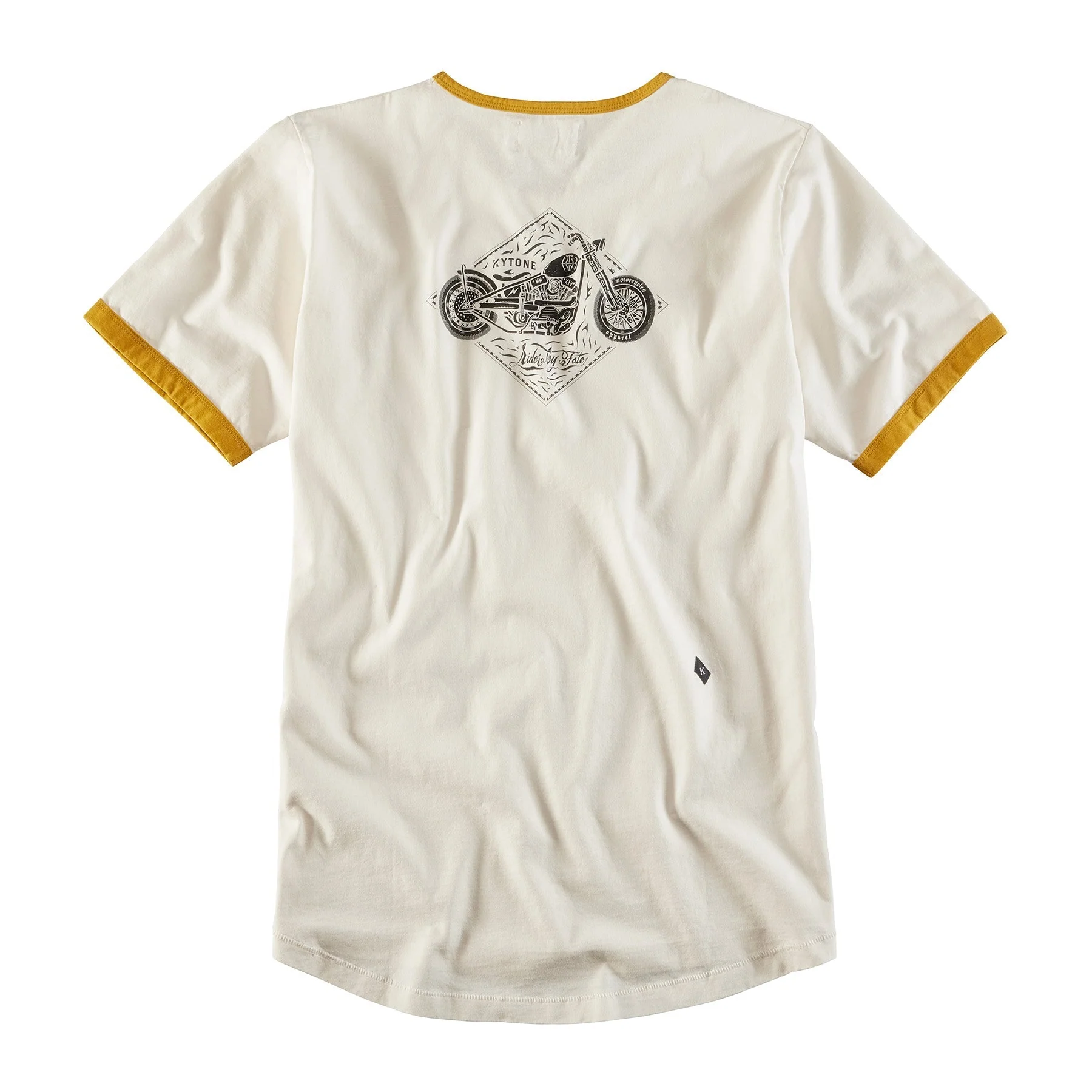 T-Shirt im Retrostil von Kytone. Nicht nur der kleine Schriftzug an der linken Brust, auch die Bündchen an den Ärmeln und dem Halsausschnitt in Kontrastfarbe erinnern an frühere Zeiten. Der Print am Rückenteil rundet durch das Motiv wie auch die Art der Grafik den Look der 1970er Jahre perfekt ab.