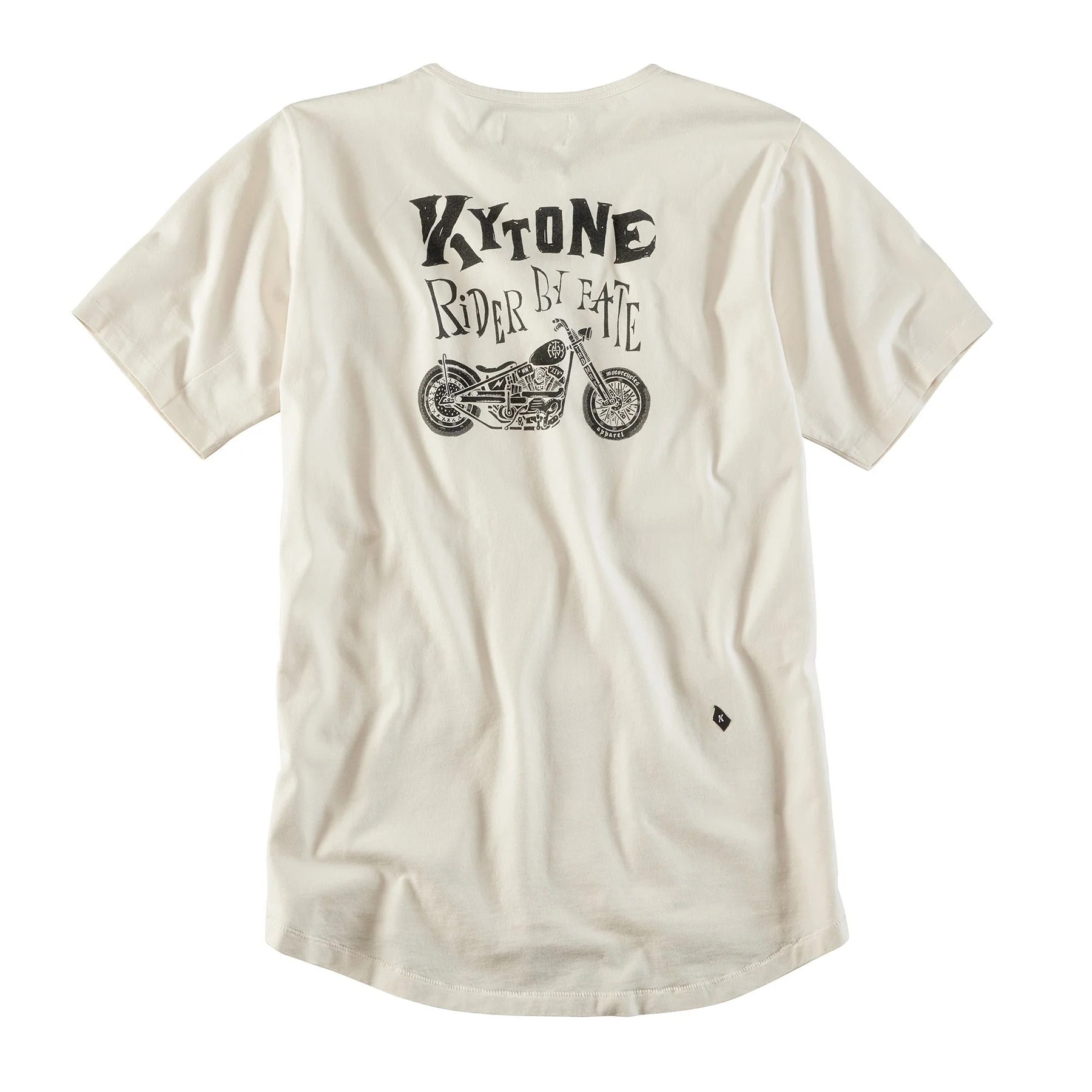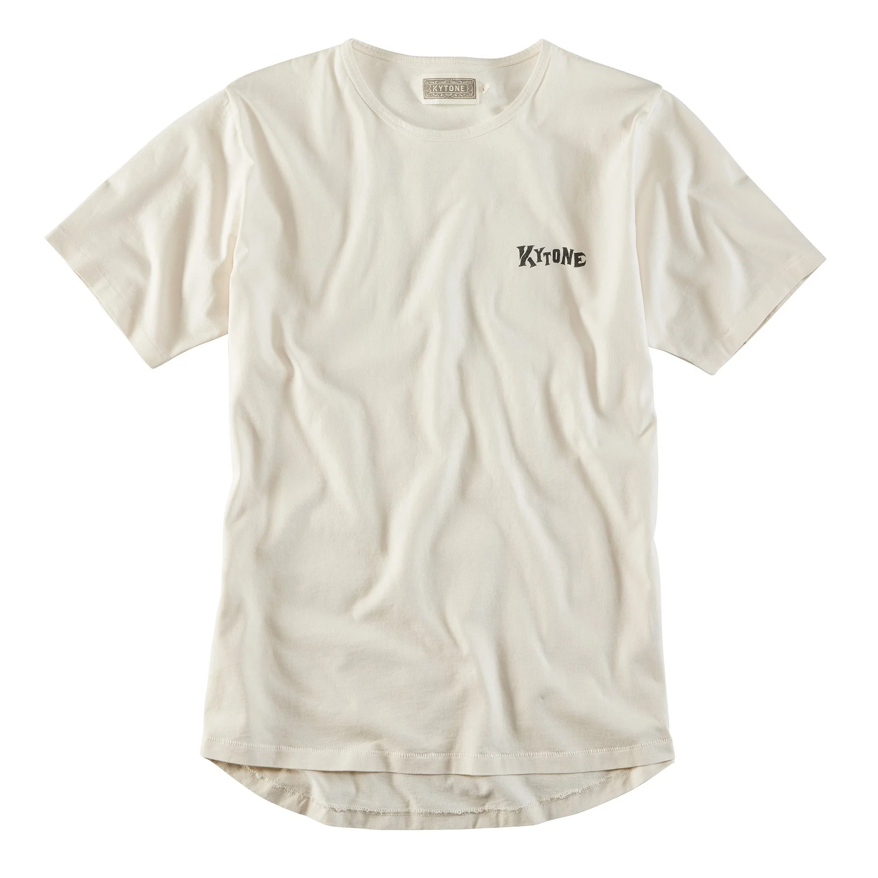 T-Shirt mit großem Rückenprint von Kytone. Das Motiv zeigt einen schönen Chopper umrankt vom Credo der Kytone Crew. Relativ dezent ist das Kytone Logo an der linken Brust aufgedruckt. Etwas festere, aber sehr weiche Baumwolle. Der Rücken ist ein wenig länger und leicht abgerundet.