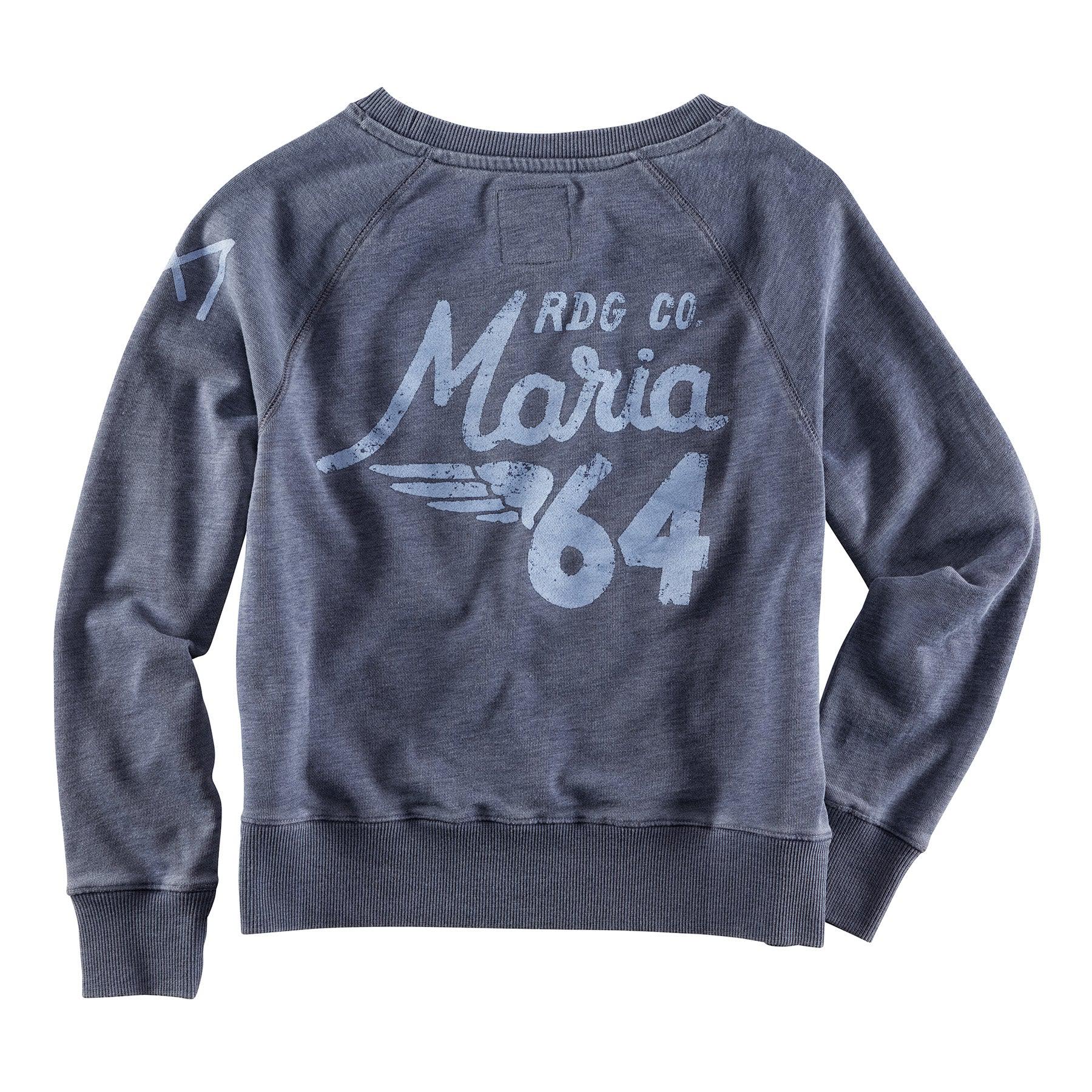 Damenpullover aus weicher Baumwollmischung vom jungen Label Maria Riding Company. Die schöne Vintage Waschung verleiht dem Pulli einen lässigen aber immer noch gepflegten Used Look. Am Rücken ist ein großer Schriftzugprint aufgedruckt. Etwas figurbetonter geschnitten, die Länge reicht ca. bis zum Hosenbund.