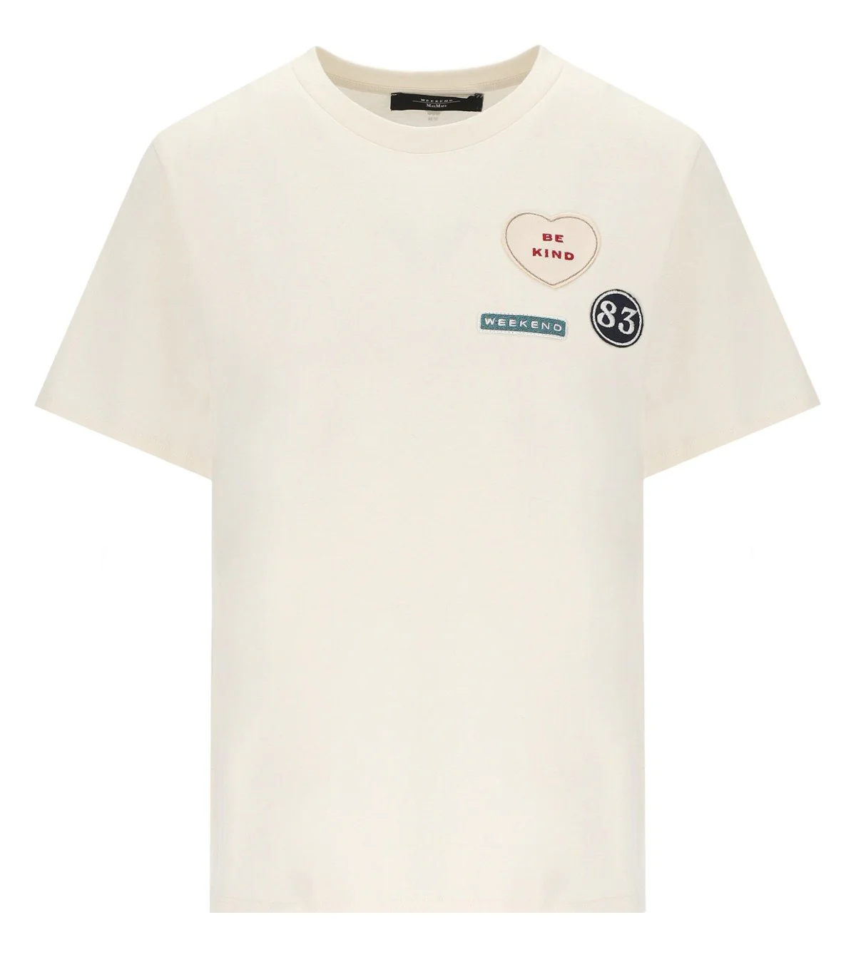 Weekend Max Mara West t-shirt made of ecru-colored cotton, decorated with colored patches on the chest. Relaxed fit. Composition: 100% cotton; decorations excluded.