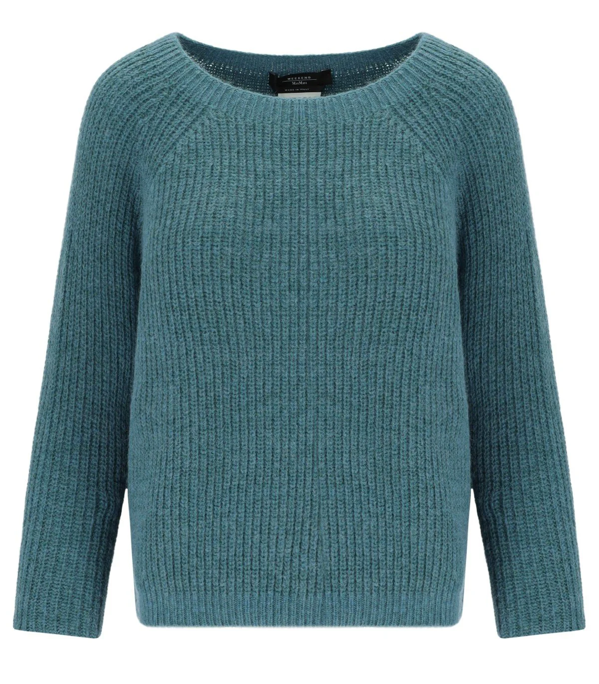 Xeno jumper by Max Mara Weekend made from a mohair blend with a corn stitch pattern in petrol green tones. Features a wide crew neck. Regular fit. The model is 178 cm tall and wears size M. Composition: 35% polyamide, 30% acrylic, 28% mohair, 8% polyester.
