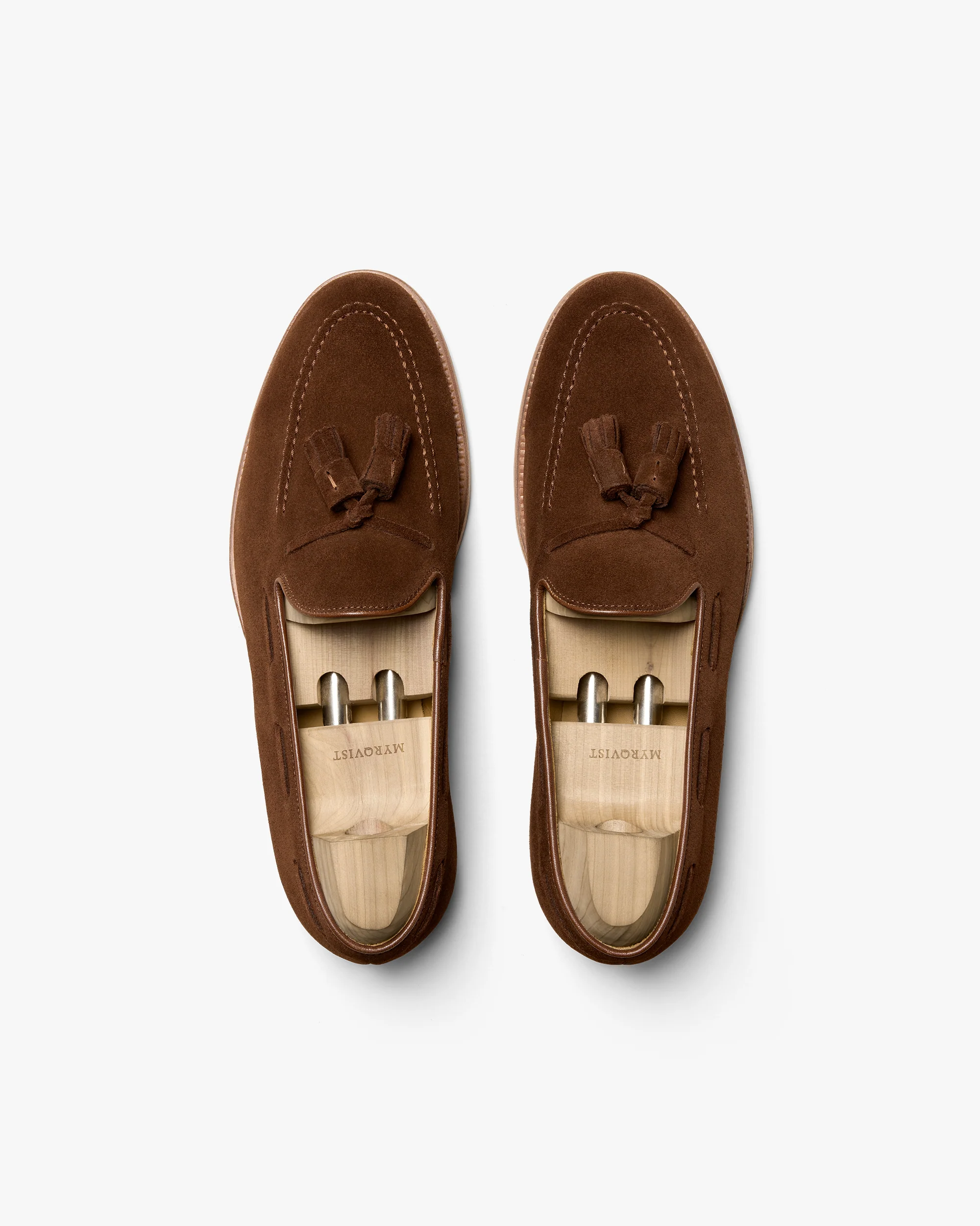 Mölle II in polo suede showcases refined craftsmanship through its elegant apron front design and decorative tassels. The soft, luxurious suede upper combines with an ergonomic fit featuring enhanced arch support, while the almond toe shape adds a sophisticated touch to this classic silhouette.