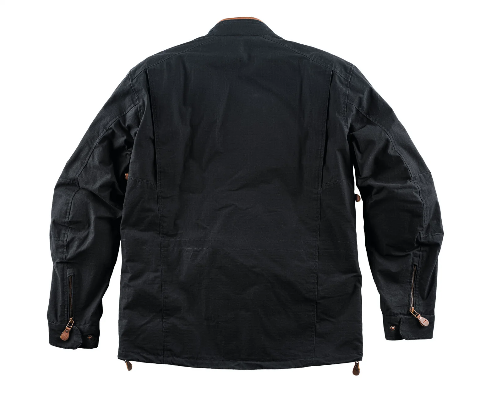 Motorradjacke mit AA Zertifizierung von North of Berlin. Dank des Sympatex Liners ist diese Baumwolljacke wind- und wasserdicht sowie atmungsaktiv. Vor allem aber die unzähligen Details machen diese Jacke zum perfekten Allrounder: Bewegungsfalten am Rücken sowie seitliche Zipps am Bund bieten Bewegungsfreiheit, Belüftungszipps untern den Armen garantieren Frischluft, Gummizüge im Bund und der Hüfte sorgen für den perfekten Sitz. Von den vier aufgesetzten Pattentaschen sind die beiden unteren wasserdicht ausgestattet. Zusätzlich gibt es zwei geräumige Innentaschen sowie eine praktische Zipptasche am linken Oberarm. Der Cordbesatz am Innenkragen und den Manschetten erhöht den Tragekomfort. Ein Verbindungs-Reissverschluss ist bereits eingearbeitet, die im Lieferumfang enthaltenen SAS-TEC Protektoren für Schultern, Ellbogen und Rücken können einfach herausgenommen werden. Im Rückenteil etwas länger geschnitten.