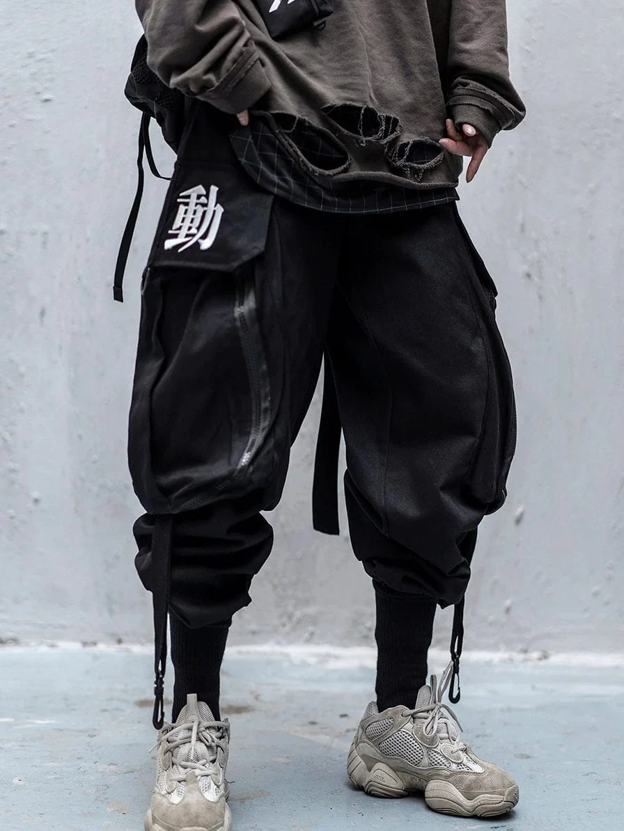 Les broderies japonaises sur ce pantalon cargo ne sont pas seulement esthétiques, elles incarnent l’esprit du streetwear japonais. Chaque broderie est placée avec précision pour ajouter une personnalité distinctive à ce vêtement déjà stylé, sans pour autant surcharger l’ensemble.