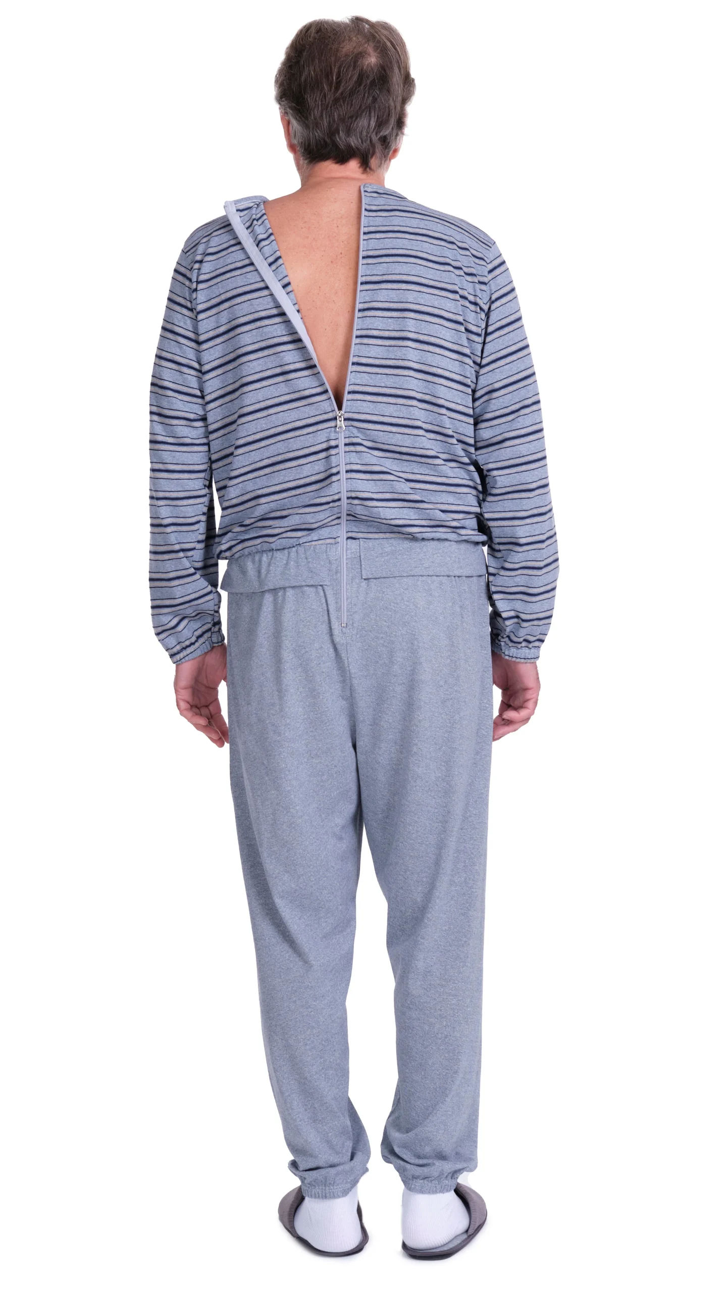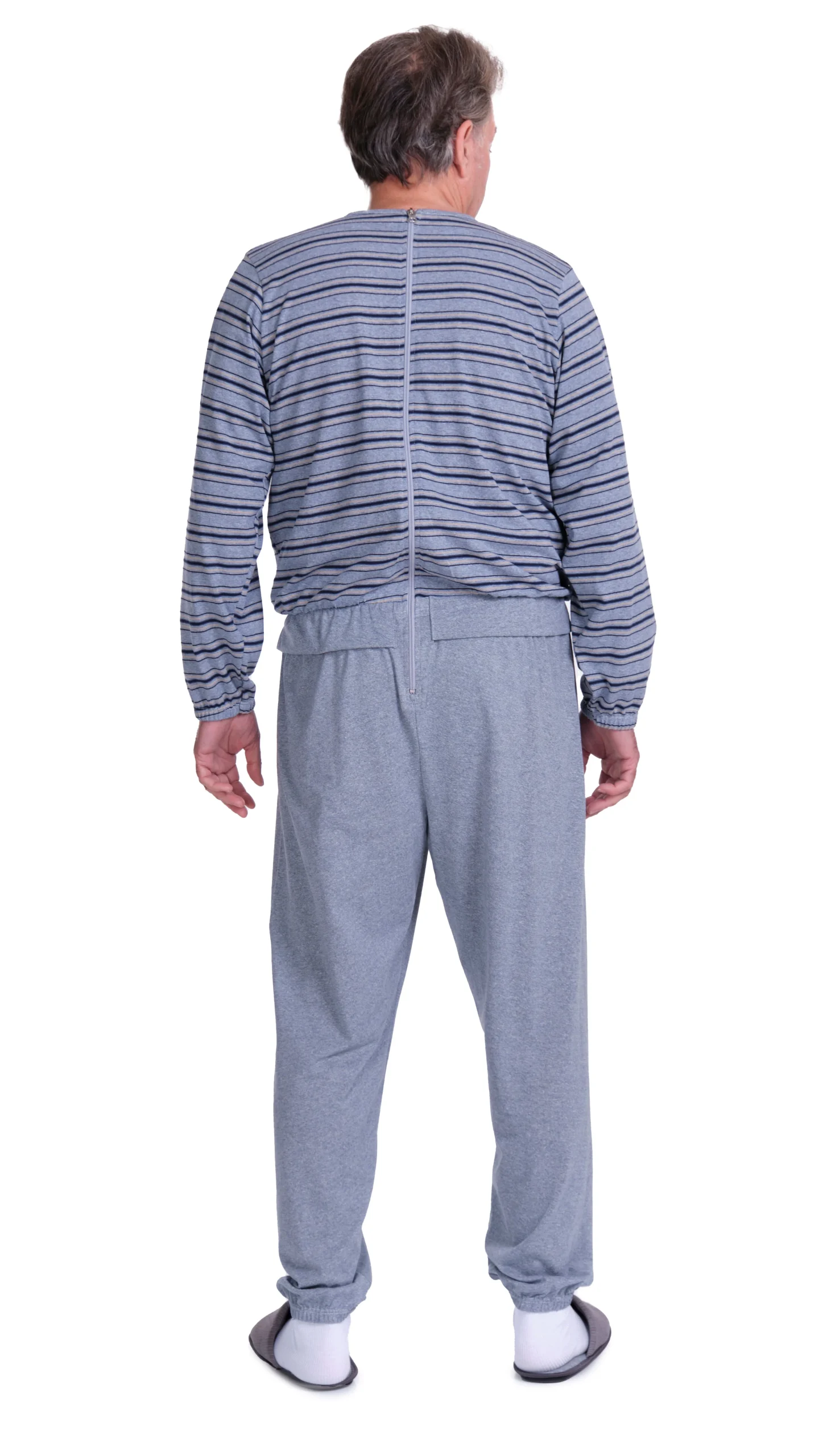 Ce pyjama combine l’élégance d’une tenue de jour et la fonctionnalité d’un vêtement facile à enfiler grâce à sa fermeture éclair au dos. Cela permet de se changer rapidement et en toute autonomie, ce qui est particulièrement utile pour les personnes ayant des difficultés de mobilité ou pour les soignants.