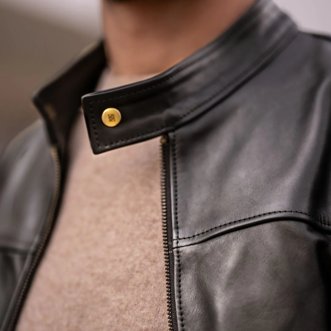 Inspiré des vestes de motard des années 70, le modèle Racer est une veste en cuir de veau au style vintage et charismatique. veste d’un col rond et de plusieurs poches zippées, dont une sur la poitrine et deux au niveau du ventre pour un maximum de fonctionnalité. Cette veste en cuir est idéale pour ceux qui recherchent un look audacieux et intemporel. Avec des finitions de haute qualité et des poches intérieures pratiques, dont une poche gravée du logo Bleather, le blouson en cuir Racer incarne à la fois style et fonctionnalité.