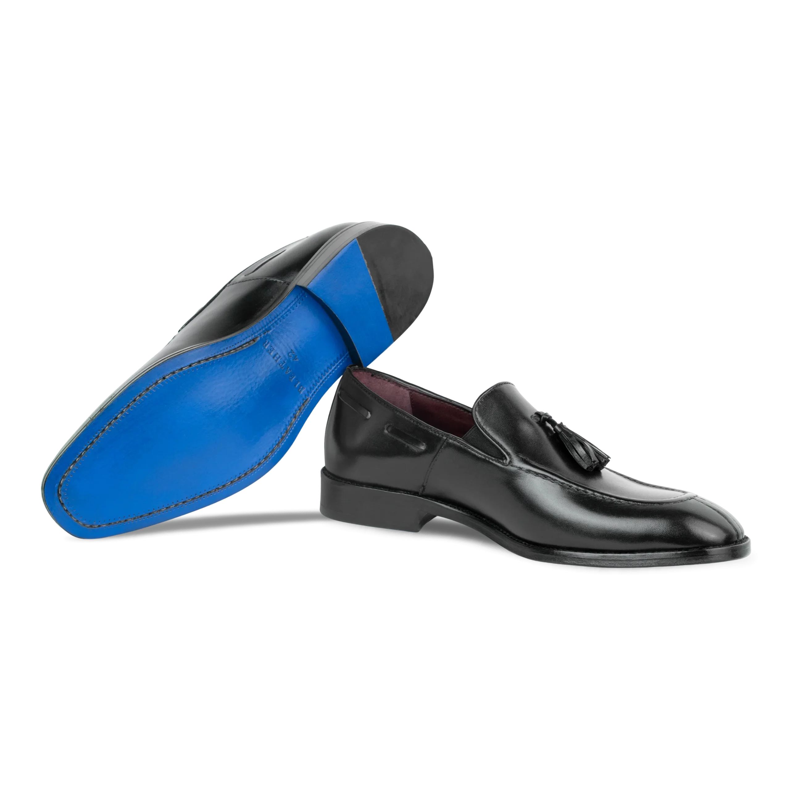Reign est un mocassin en cuir pleine fleur au style raffiné, rehaussé de pampilles artisanales et d’une semelle en cuir bleu signature. Élégant, confortable et intemporel, il accompagne avec assurance chaque tenue.