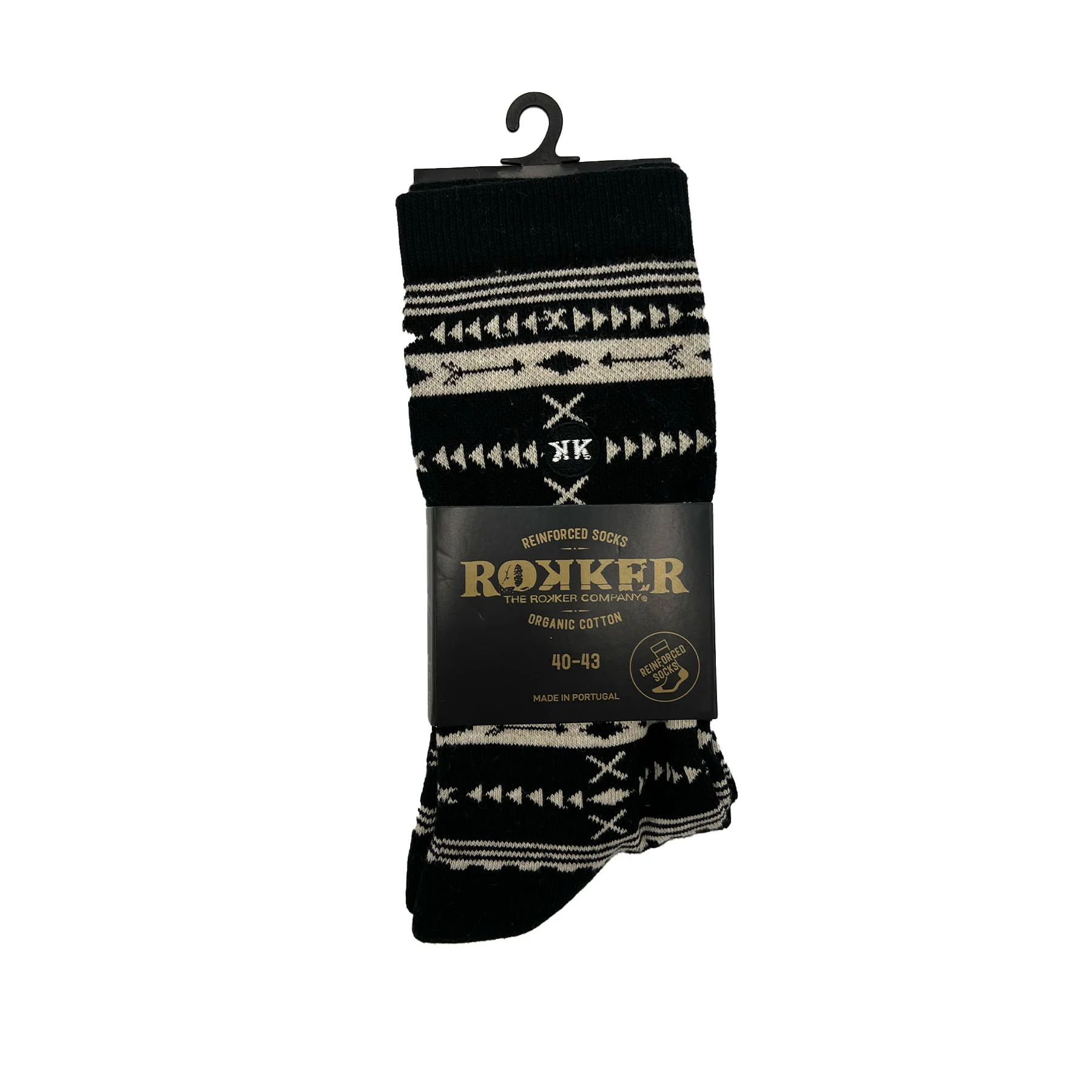 Baumwollsocken für Herren von The Rokker Company. Das verstärkte Fußbett sorgt für besonderen Komfort und ein sehr angenehmes Tragegefühl. Das eingewebte Muster im Ethno oder Boho Style läßt einen auch im Alltag an die Wildnis und das Abenteuer denken. Länge ca. 18cm.