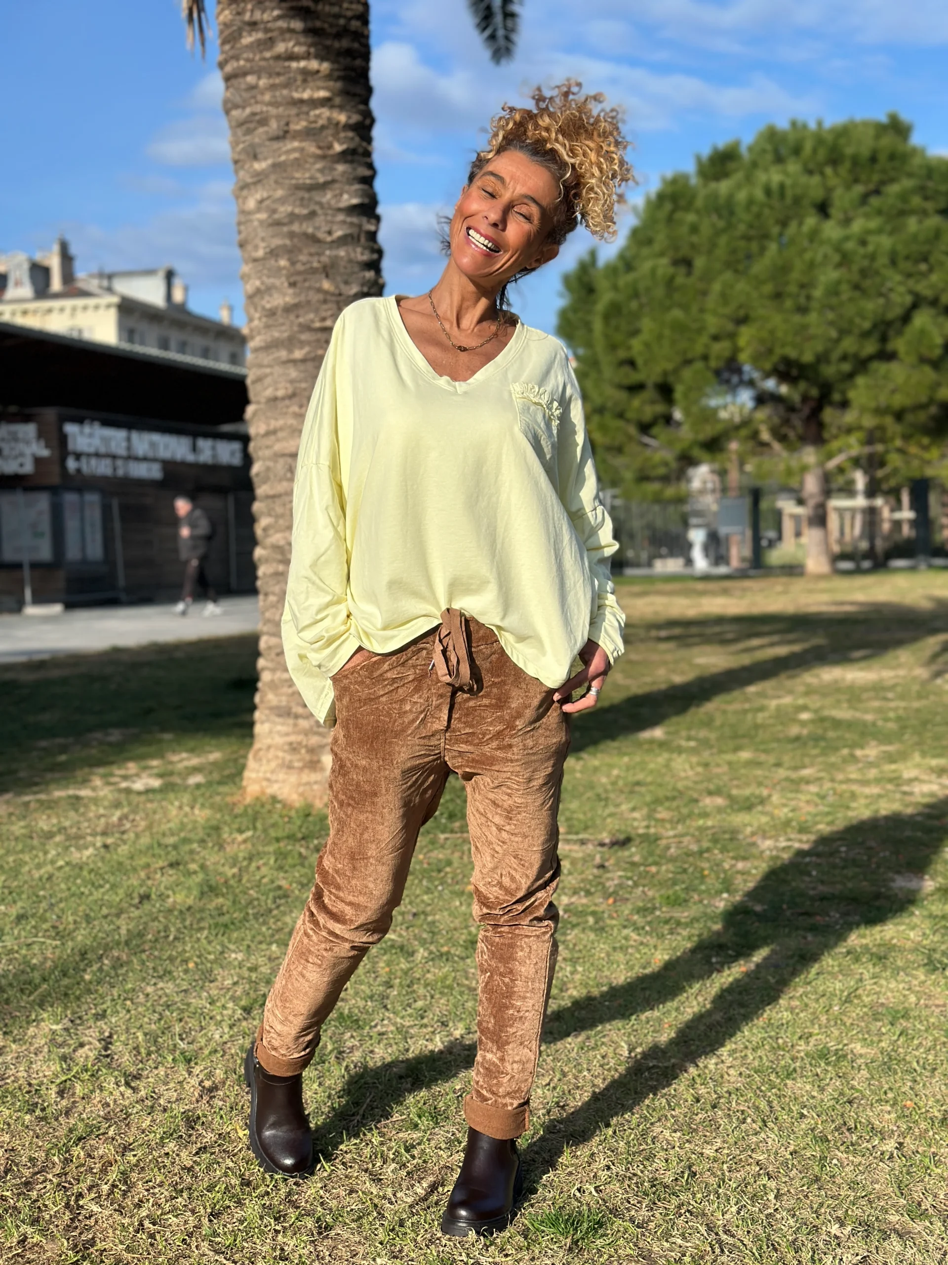 Sweat fin jaune POCHE FROUFROU