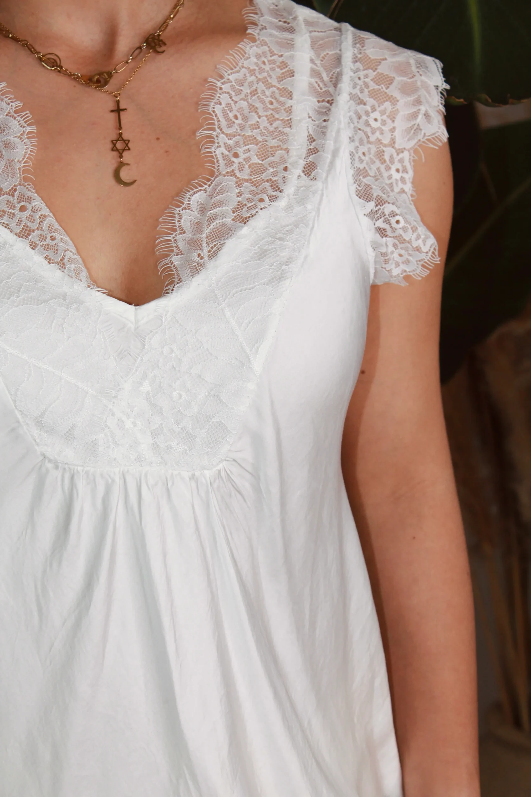 . Décolleté en V devant, dentelle sur le décolleté, satiné